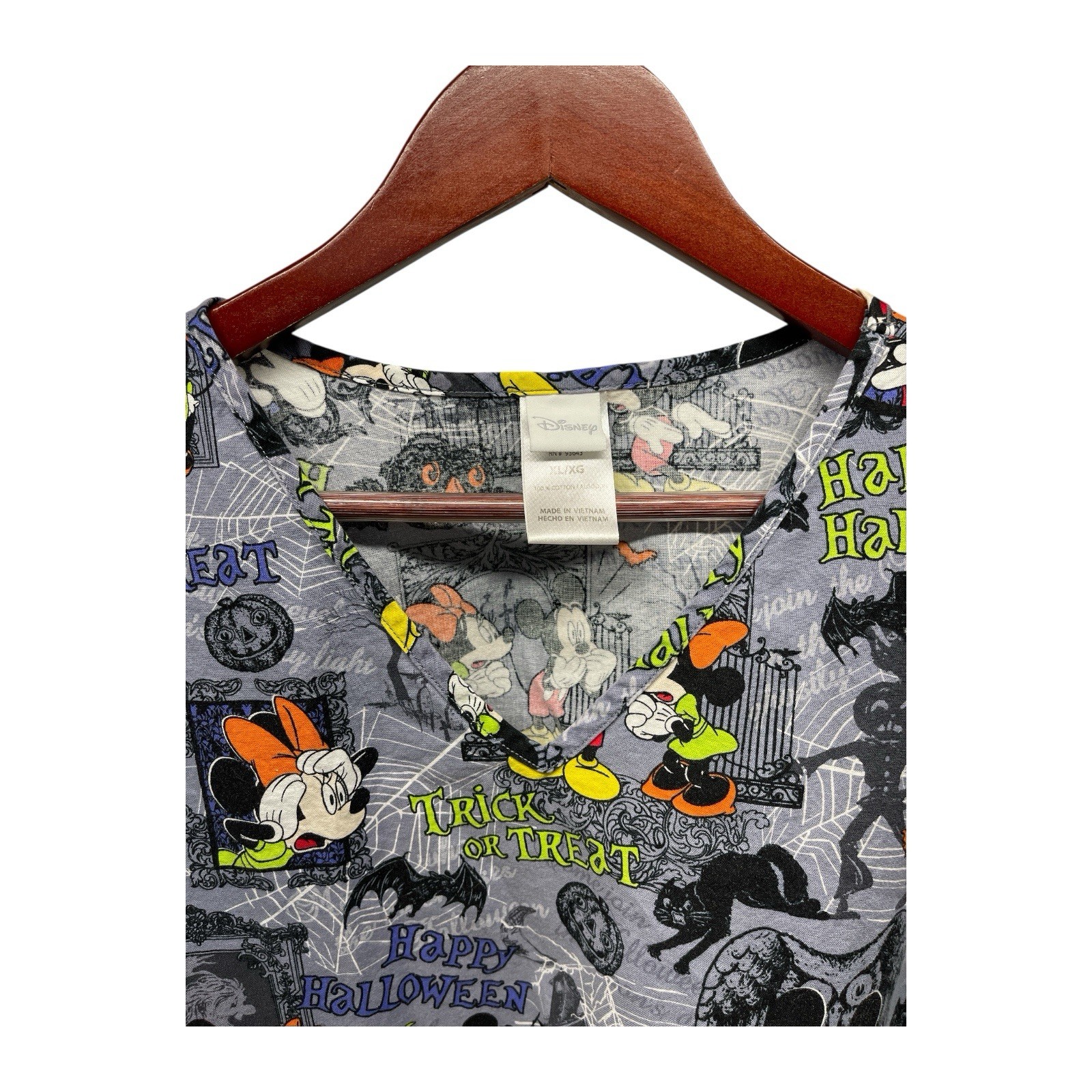 Disney Happy Halloween Scrub Top Women s Gray XL W/pockets