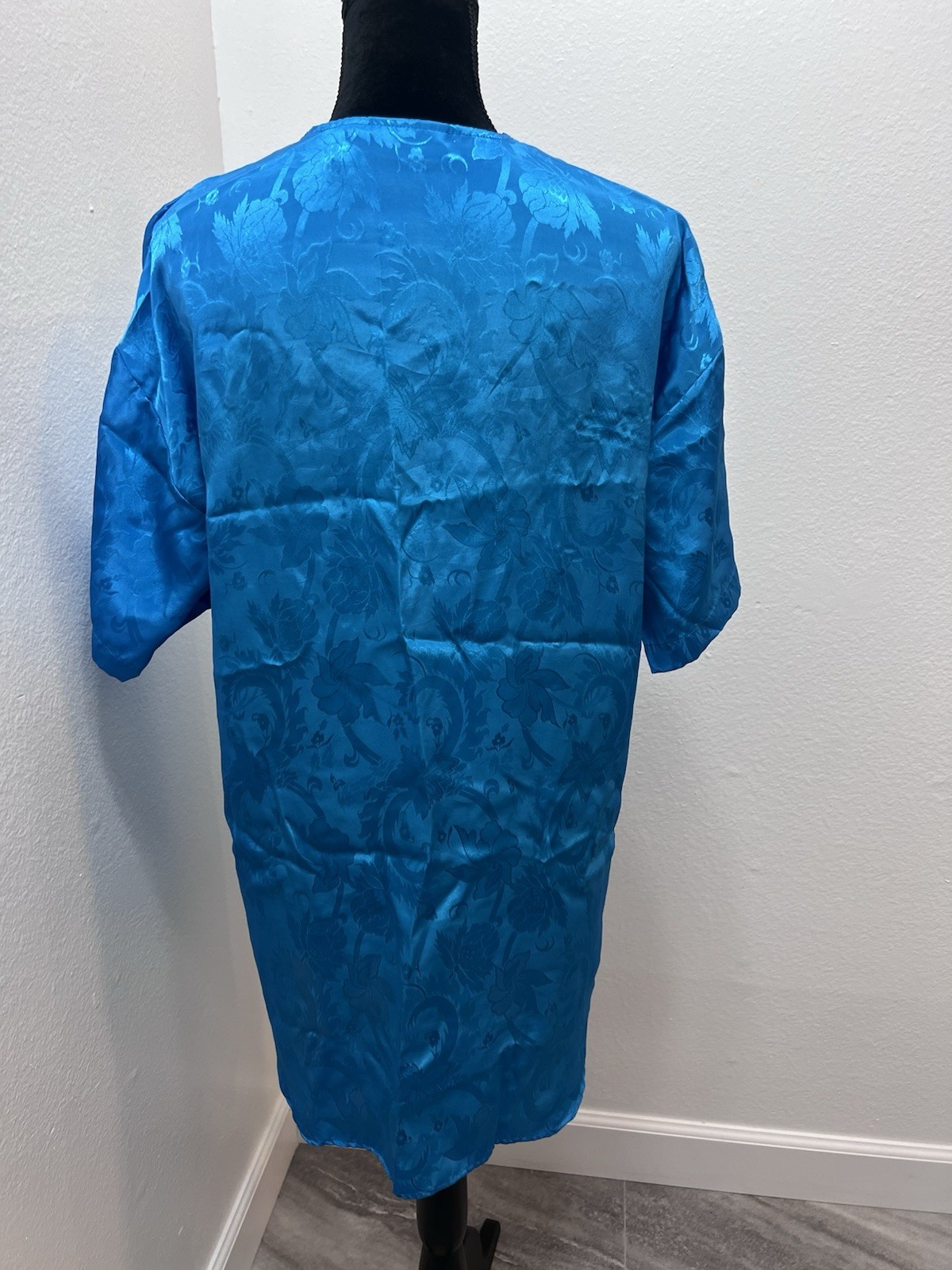 Victoria's Secret Vintage Gold Label Blue Satin Floral Jacquard Sleep Shirt Sz L