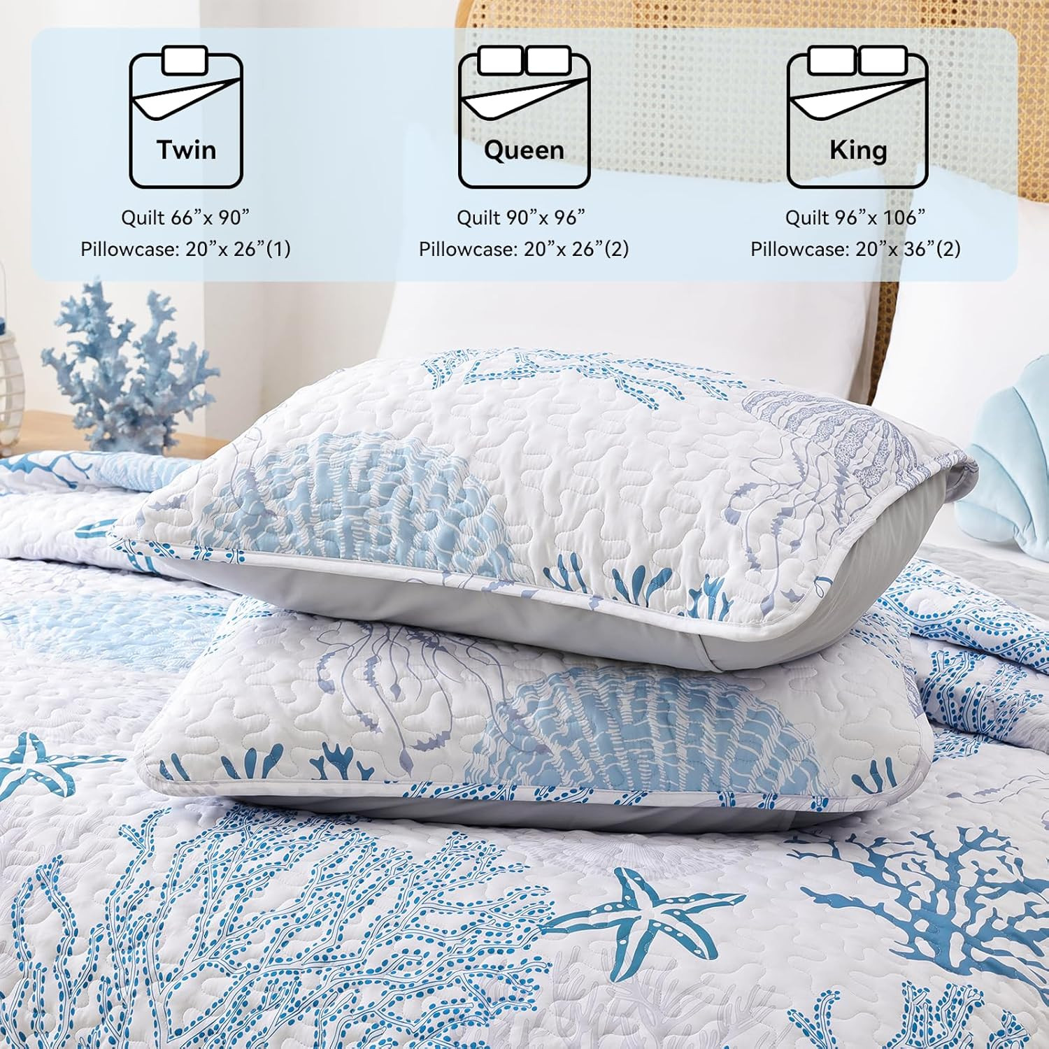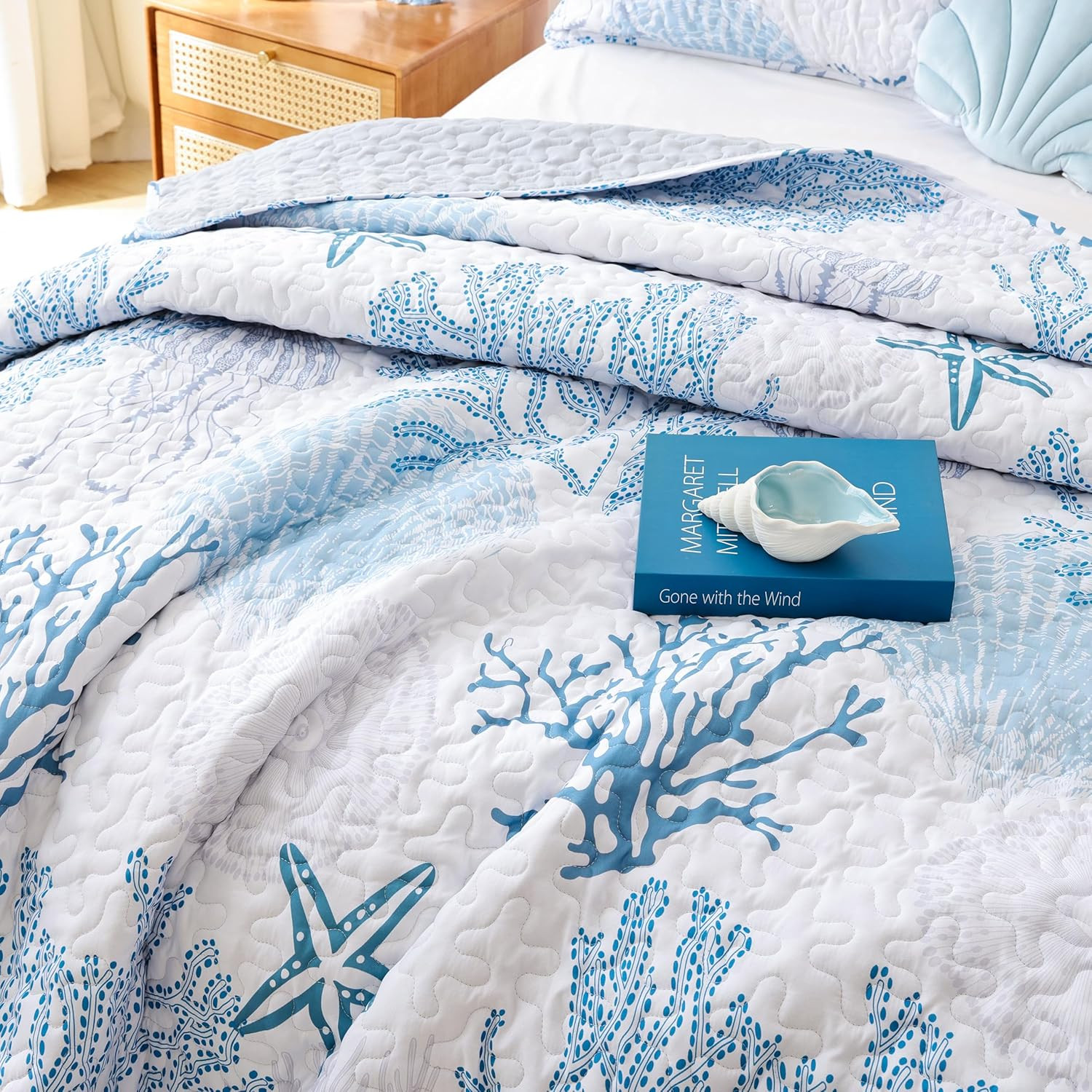 Coastal Quilts Bedding Set Queen Size - Blue Summer Nautical Bedding Quilt with