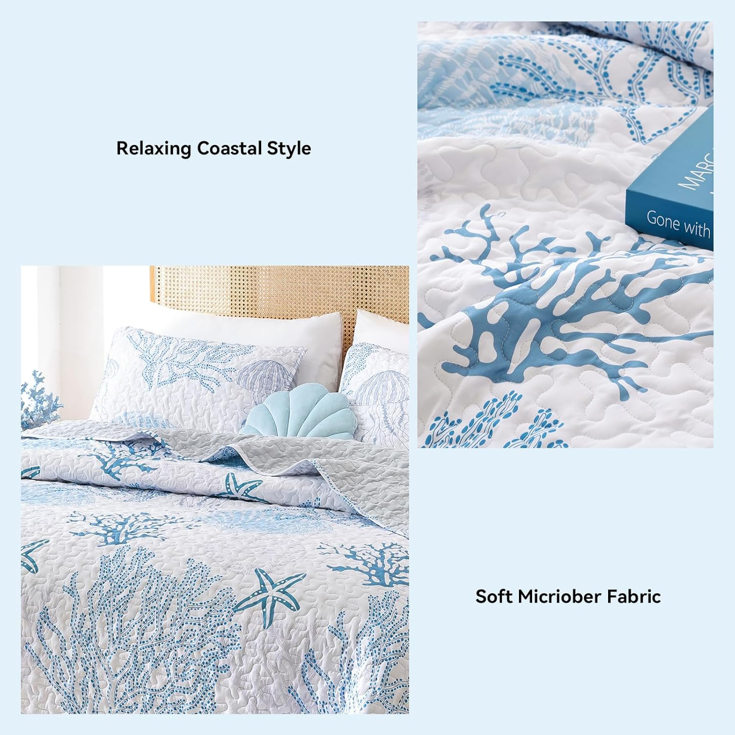 как выглядит Coastal Quilts Bedding Set Queen Size - Blue Summer Nautical Bedding Quilt with фото