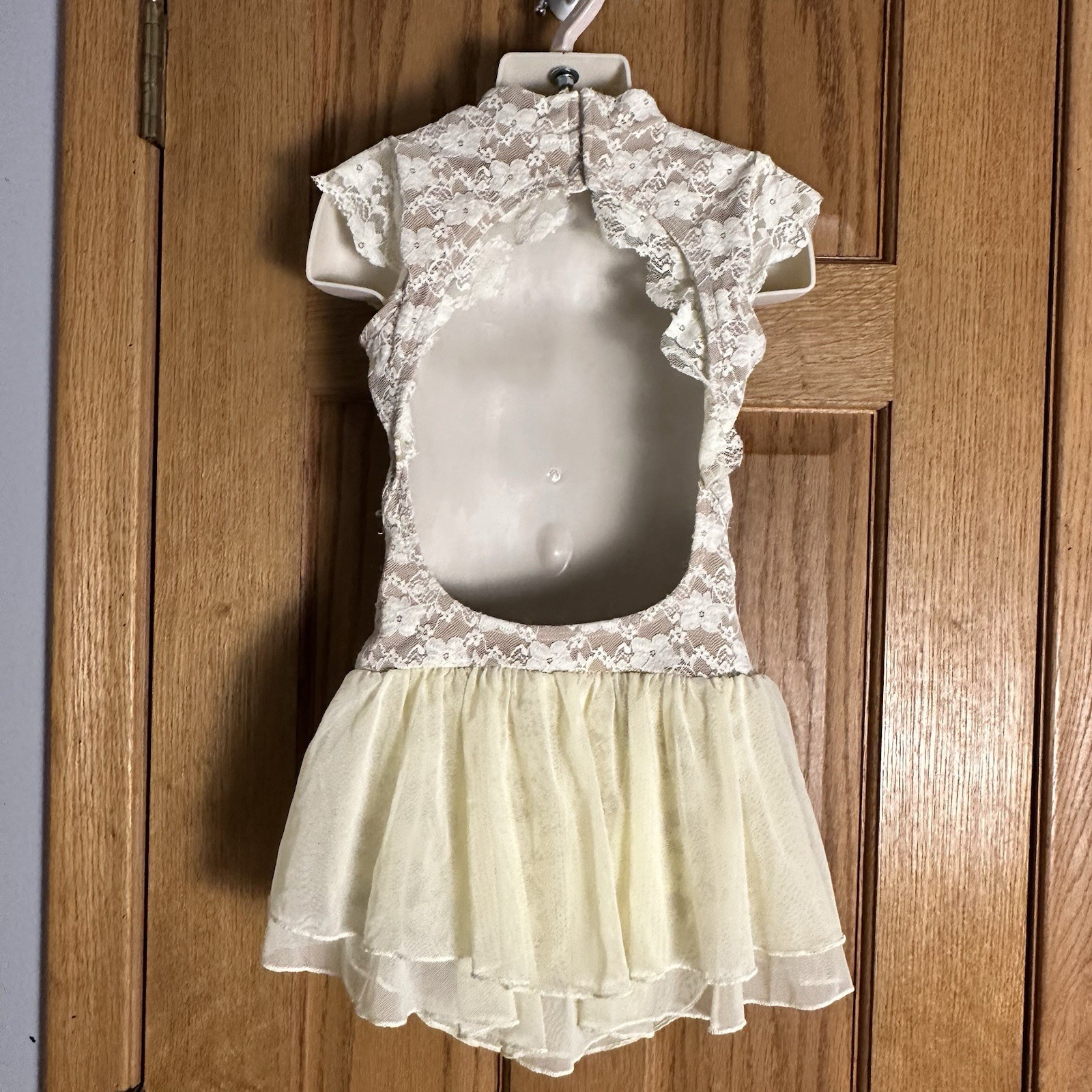 The Line Up Ivory Lace High Neck Open Back Mesh Skirt Dance Costume sz 10