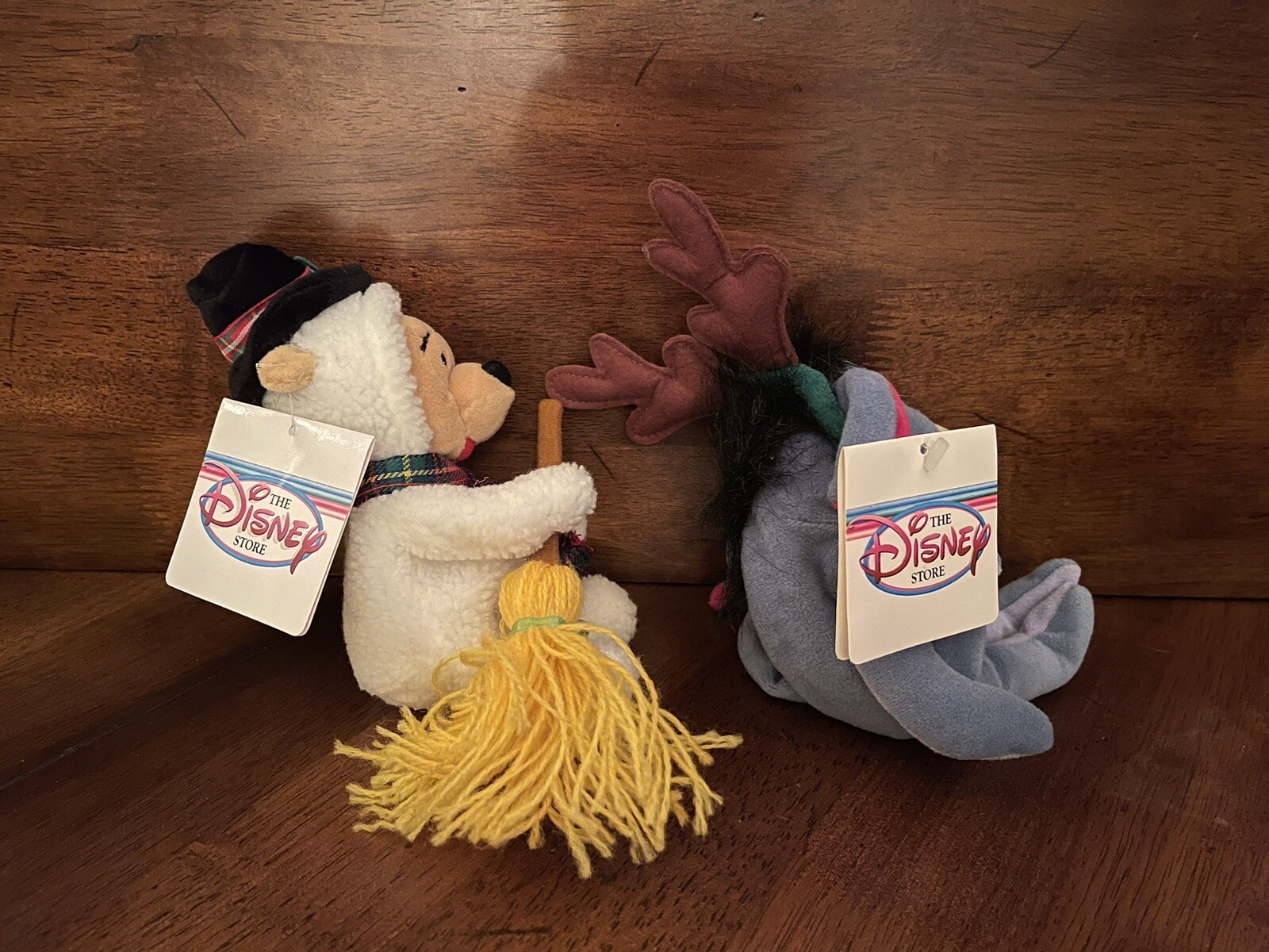 Disney Store - Mini Bean Bag Plush - Snowman Pooh 8 and Reindeer Eeyore 9