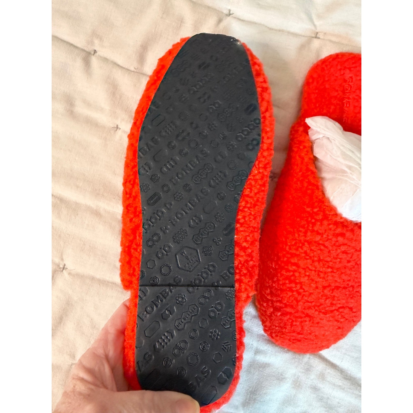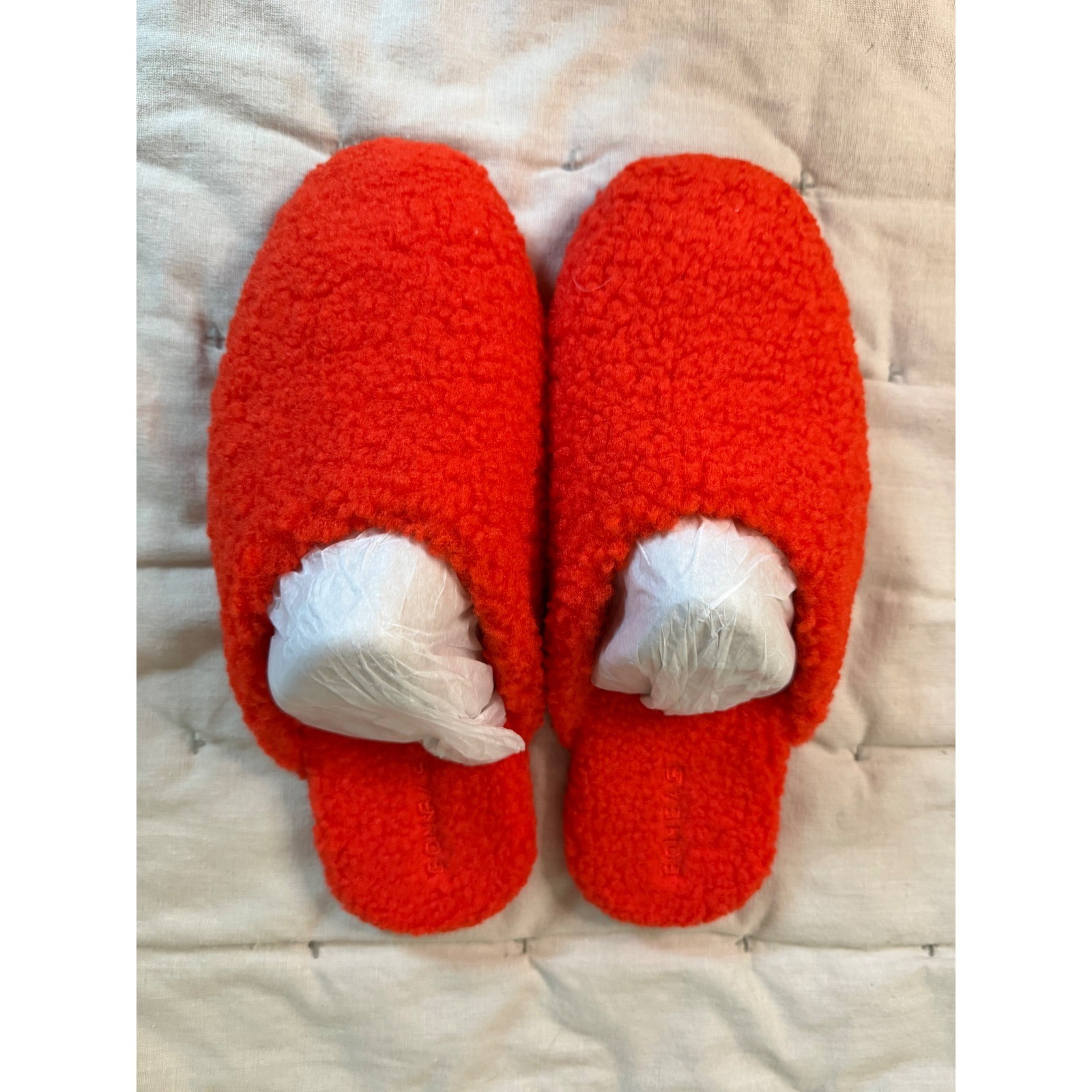 как выглядит Bombas Sunday Slippers 9 Tomato Orange Sherpa Fleece Slip On Mules House Shoes фото