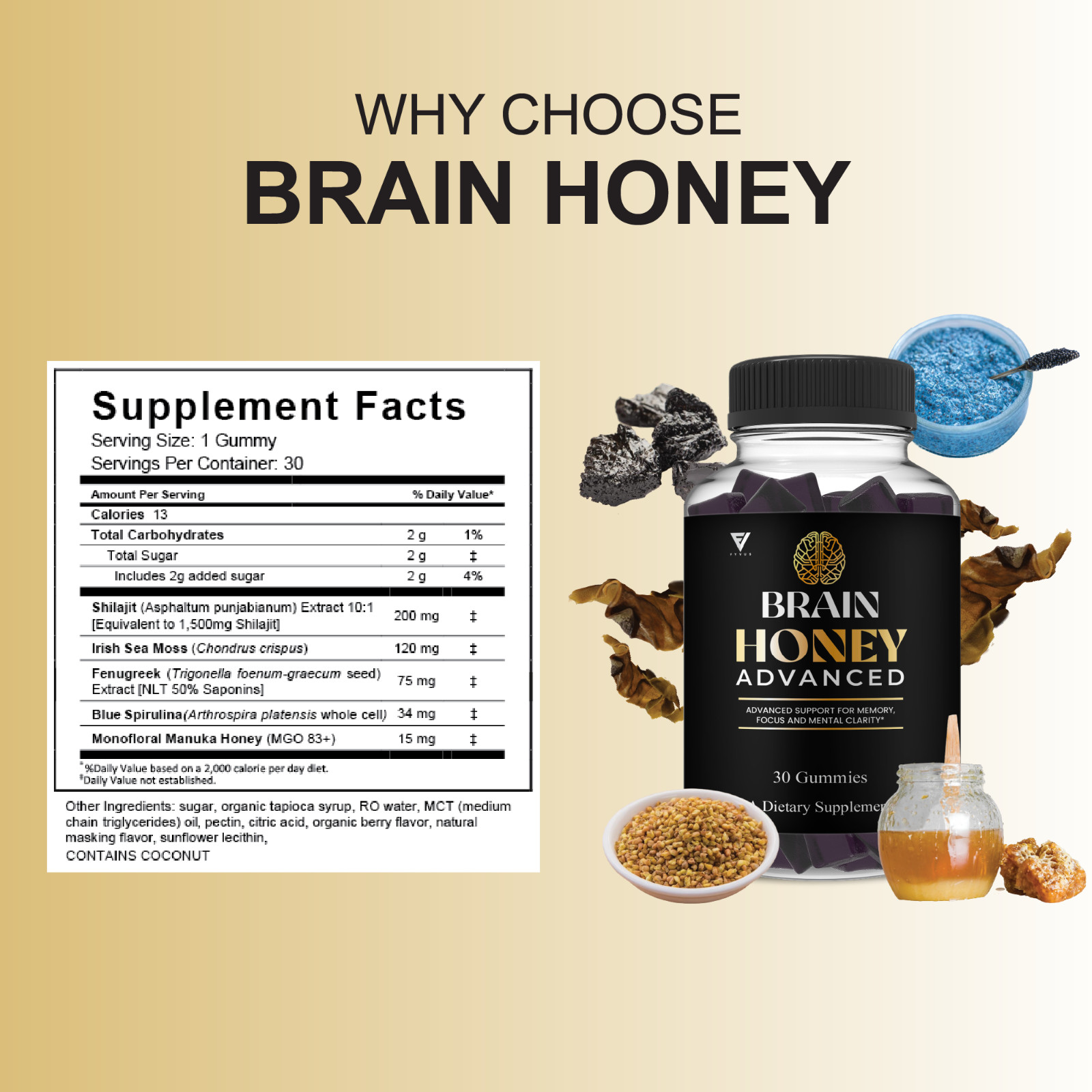 Active Ingredients: Shilajit, Fenugreek, Irish Sea Moss, Manuka Honey