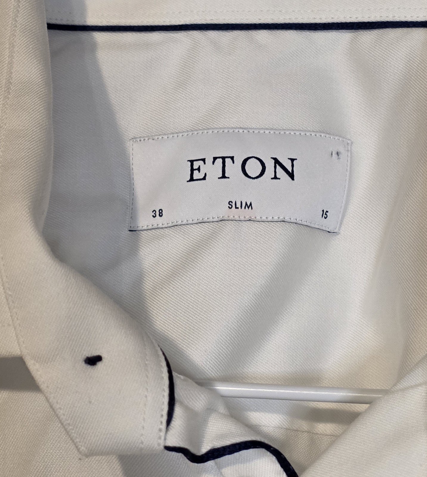 ETON Dress Shirt Slim Fit Long Sleeve Swiss Dots Blue White Cotton Mens 38 15