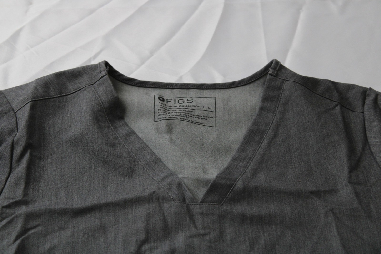 как выглядит Figs Womens Classic Fit Casma Three-Pocket Scrub Top BL1 Graphite Large фото