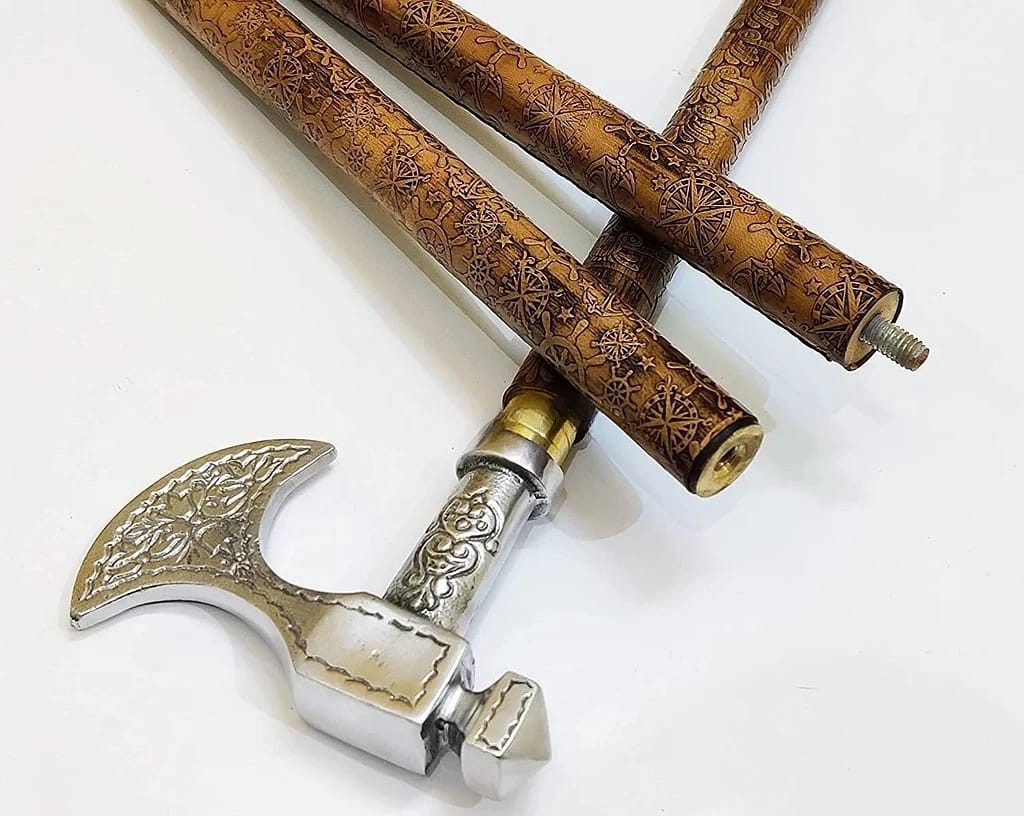 Antique Leather Stamp Wooden Walking Stick With Brass Handle For Men Women Gift