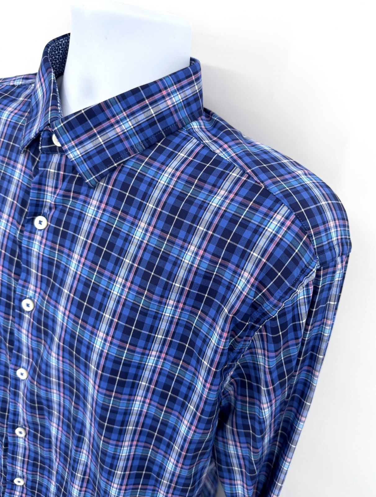 Bugatchi Men's XL Stretch Shaped Fit Button Down Shirt Blue Check Designer