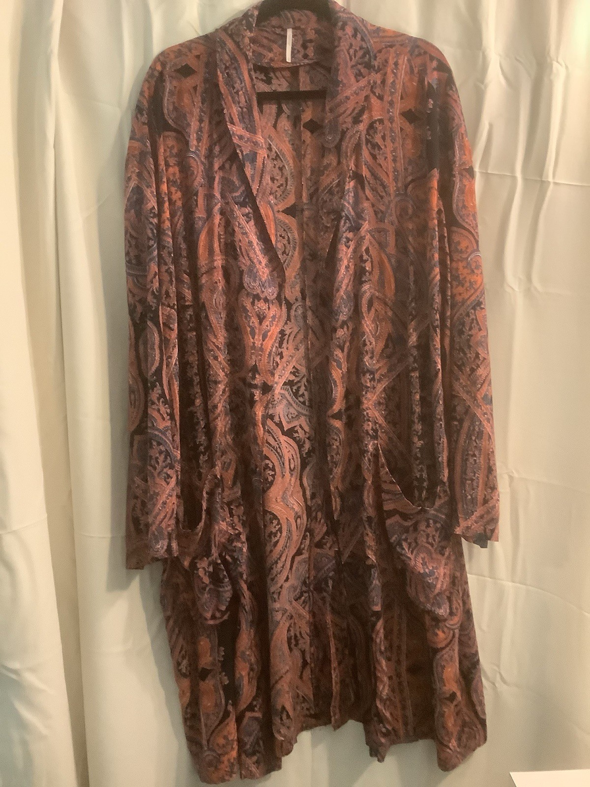 Free People Rayon Kimono Robe Orange And Navy Paisley Print Sz L