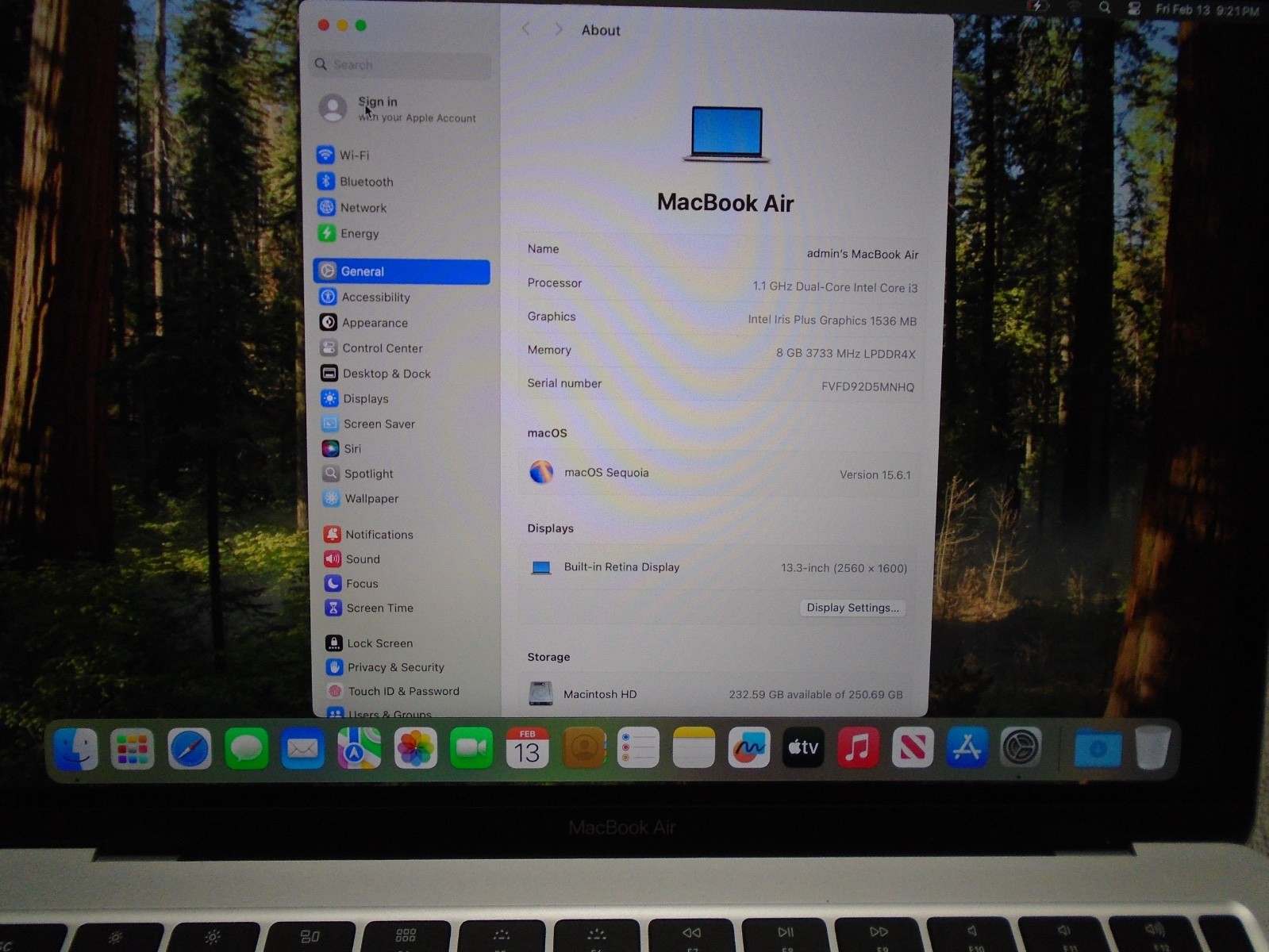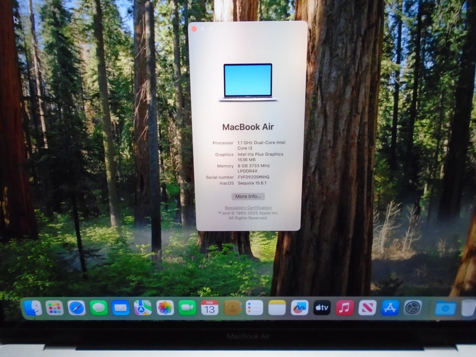 2020 release Apple MacBook Air, 13, 1.1GHz i3, 8gb RAM, 256gb SSD, Excellent