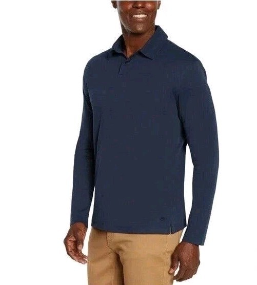 как выглядит Banana Republic Mens Long Sleeve Luxe Touch Performance Polo Large Blue New фото