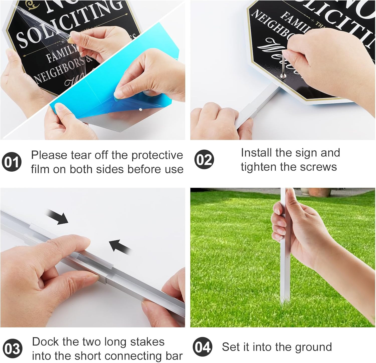 No Soliciting Sign for House with Stake, 10 X 10 Inches No Soliciting Yard Sign