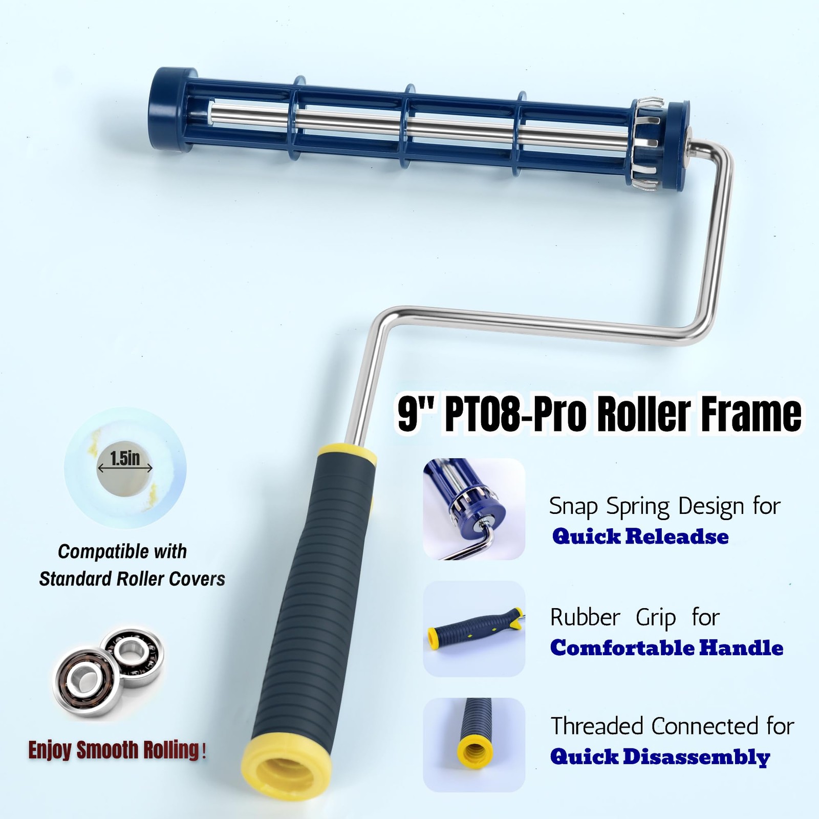 Paint Roller Kit - Set with 2 Brush, Heavy-Duty 9 Blue