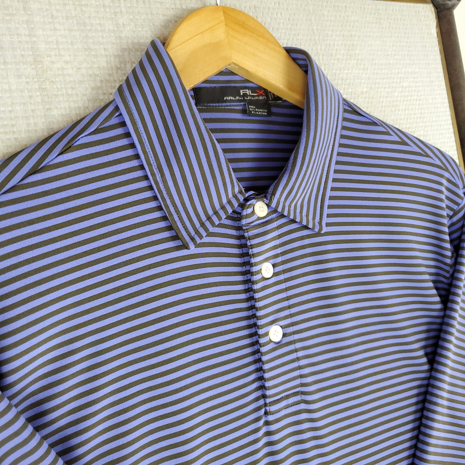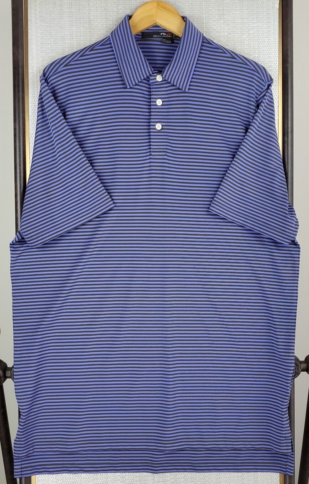 RLX Ralph Lauren Size Large Mens Lavender/Charcoal Polo Shirt Golf Wicking UV