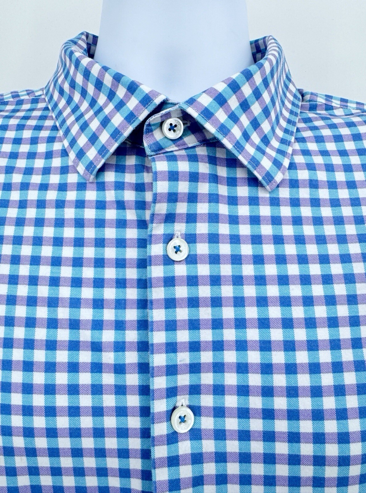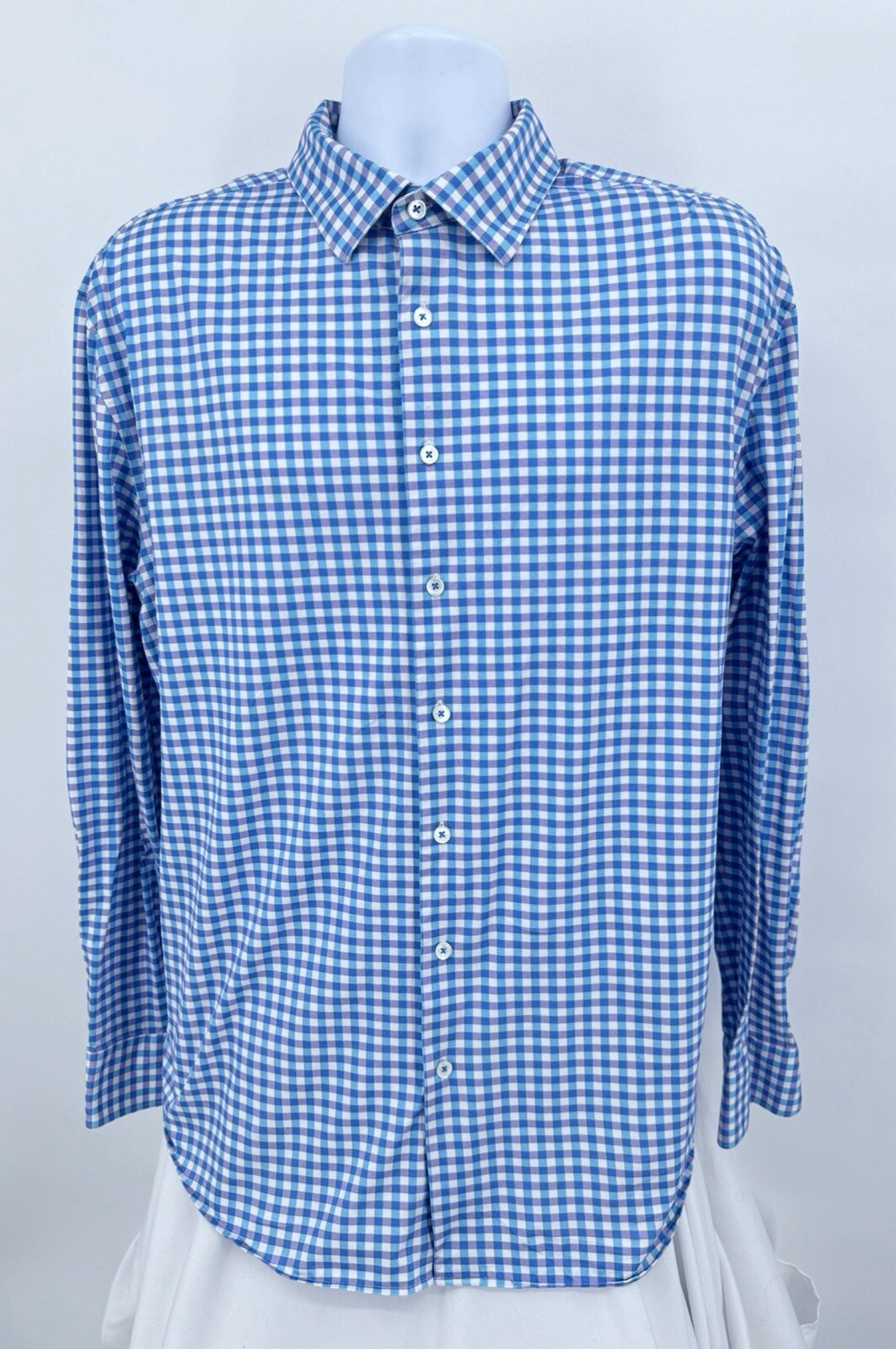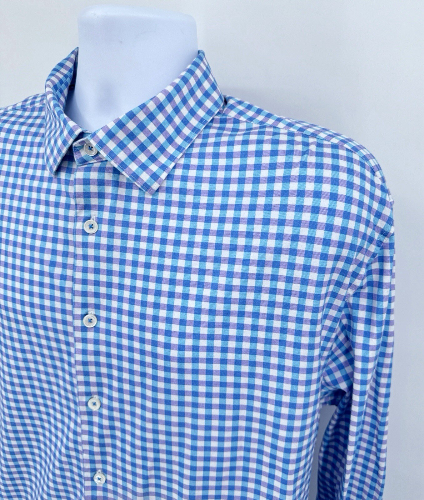 Bugatchi Men's 2XL 8-Way Stretch Shirt Button Up Blue Check Long Sleeve
