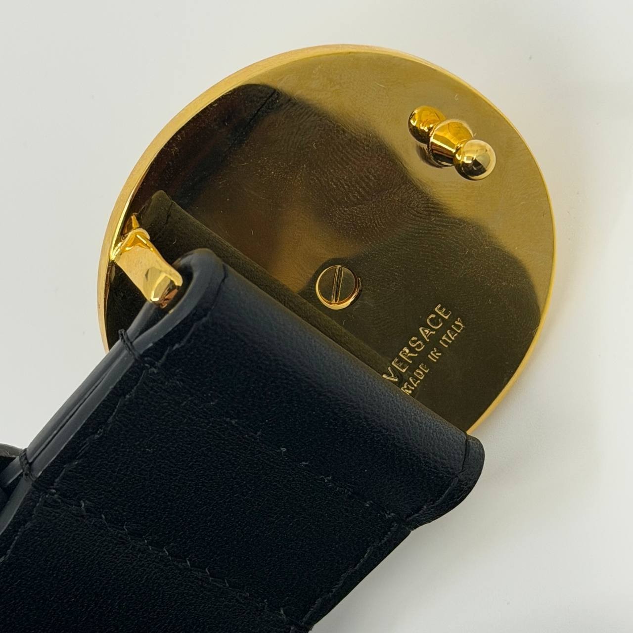 как выглядит Authentic Versace Mens Belt Gold Medusa Buckle Black Calfskin Leather Belt фото