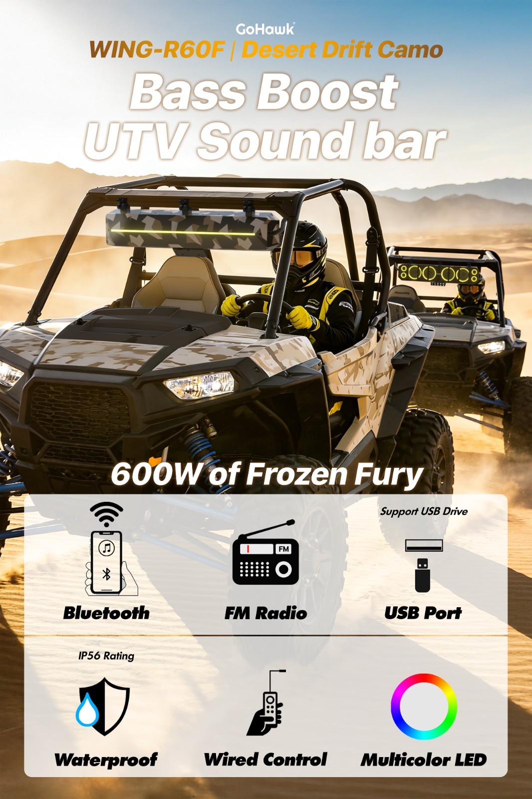 8-Speaker 600W UTV Sound bar Bluetooth Polaris ATV RZR Waterproof Radio System
