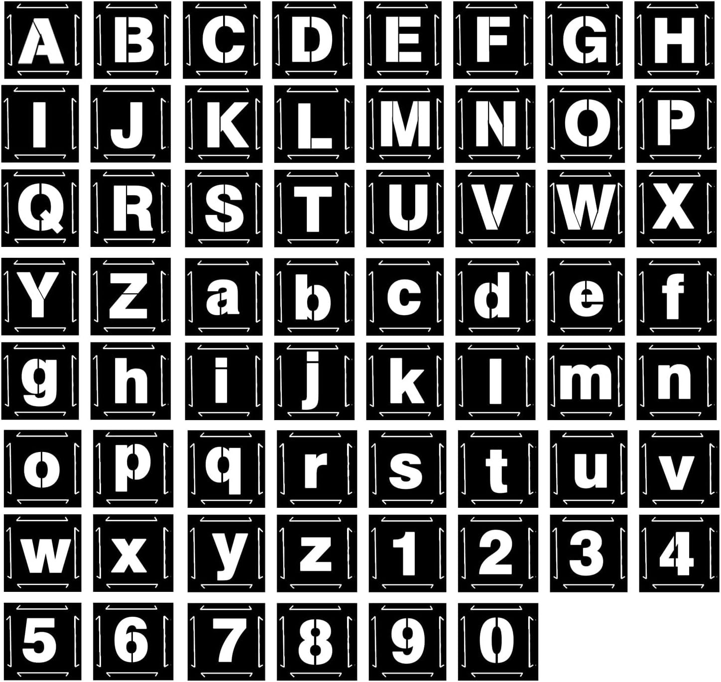 1 Inch Letter Stencils for Painting, 62 Pcs Reusable Plastic Letter Number Stenc