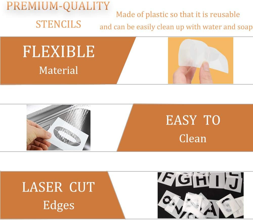 Set Name: 62 Pcs Reusable Plastic Letter Number Stencils