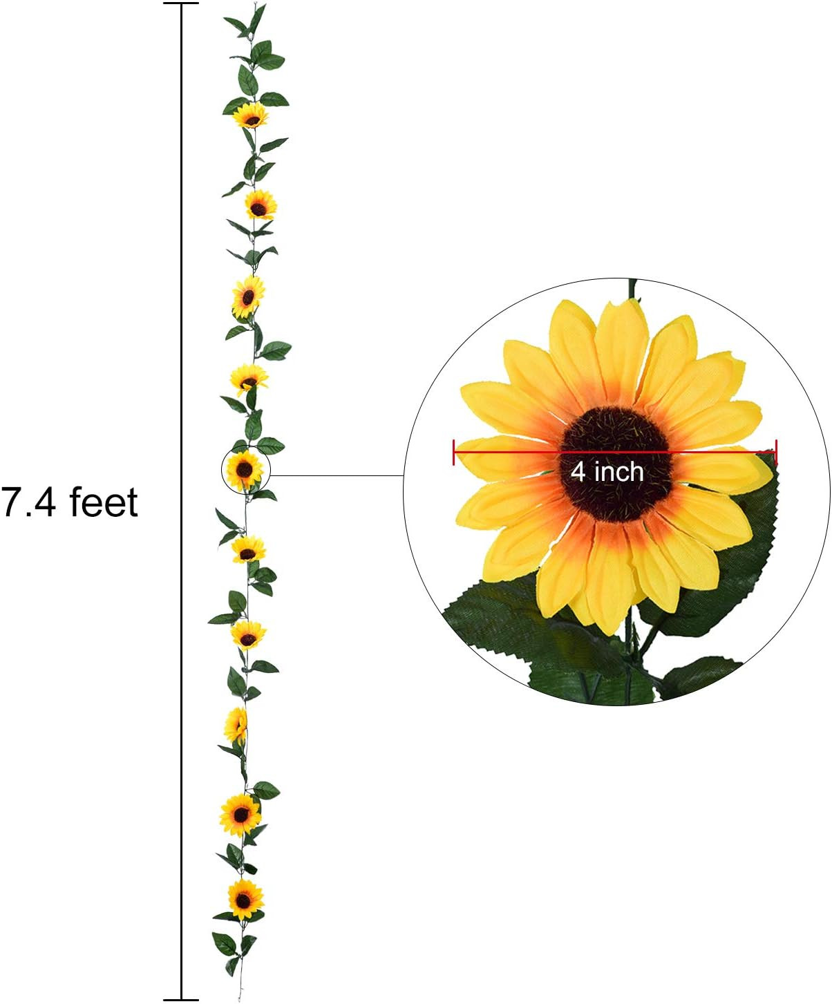 4 Pack Artificial Sunflower Garland - Silk Sunflower Vine Artificial Flowers Gar