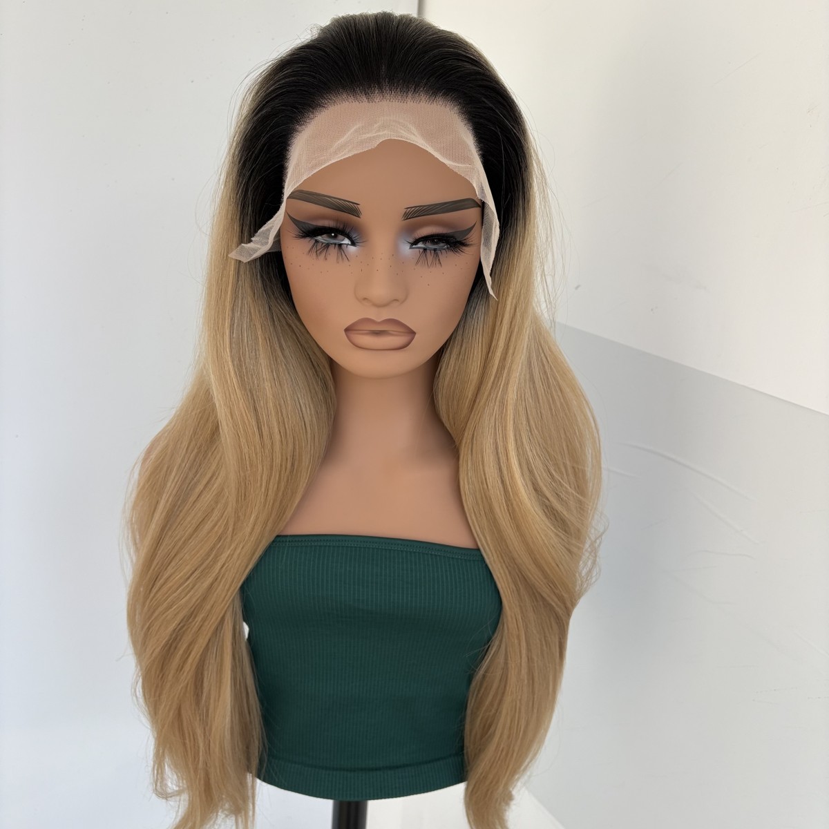 Heat Resistant Hair HD Lace Front Wig Long Straight Blended blonde