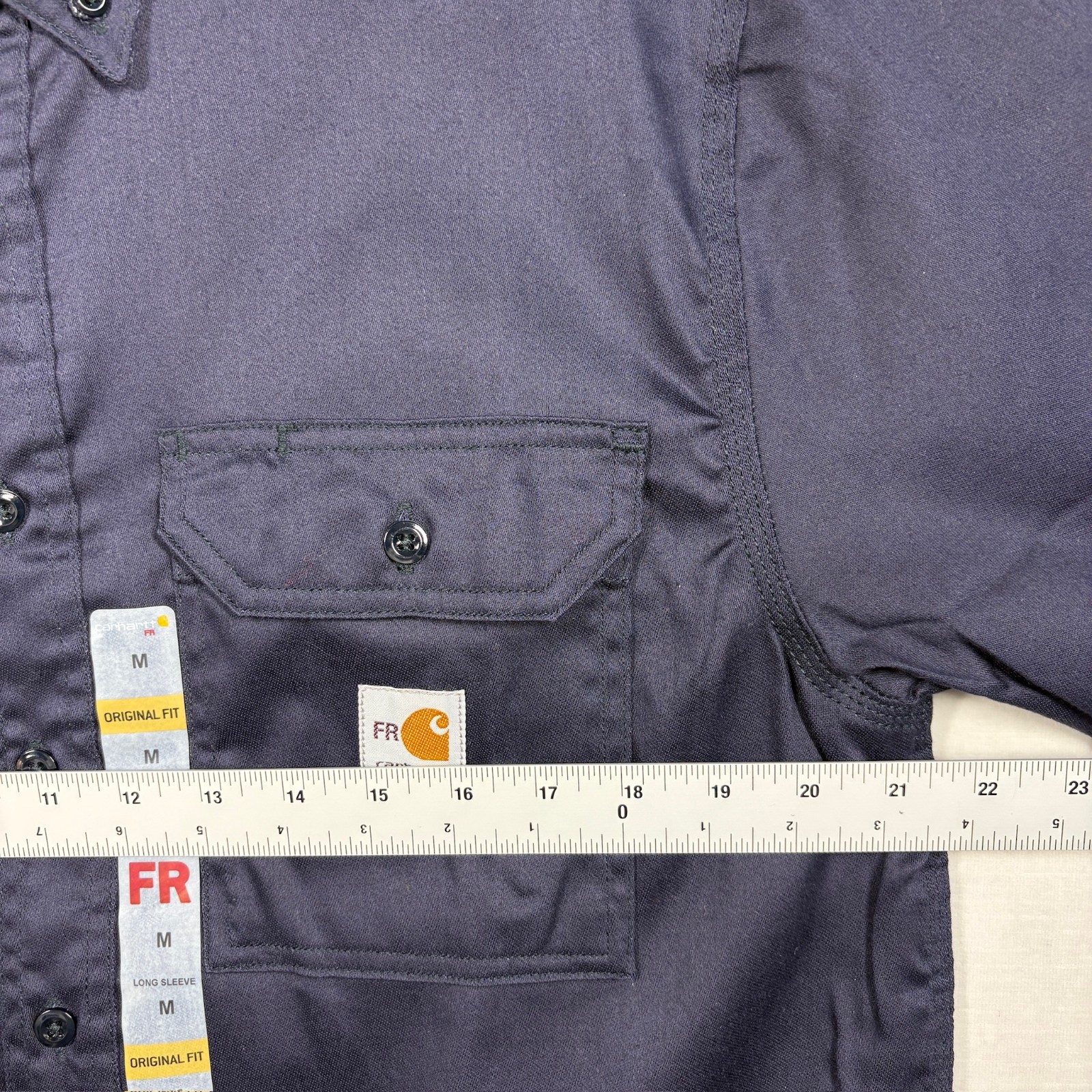 Carhartt FR Button Down Shirt Men M Navy Flame Resistant Work Long Sleeve FRS003