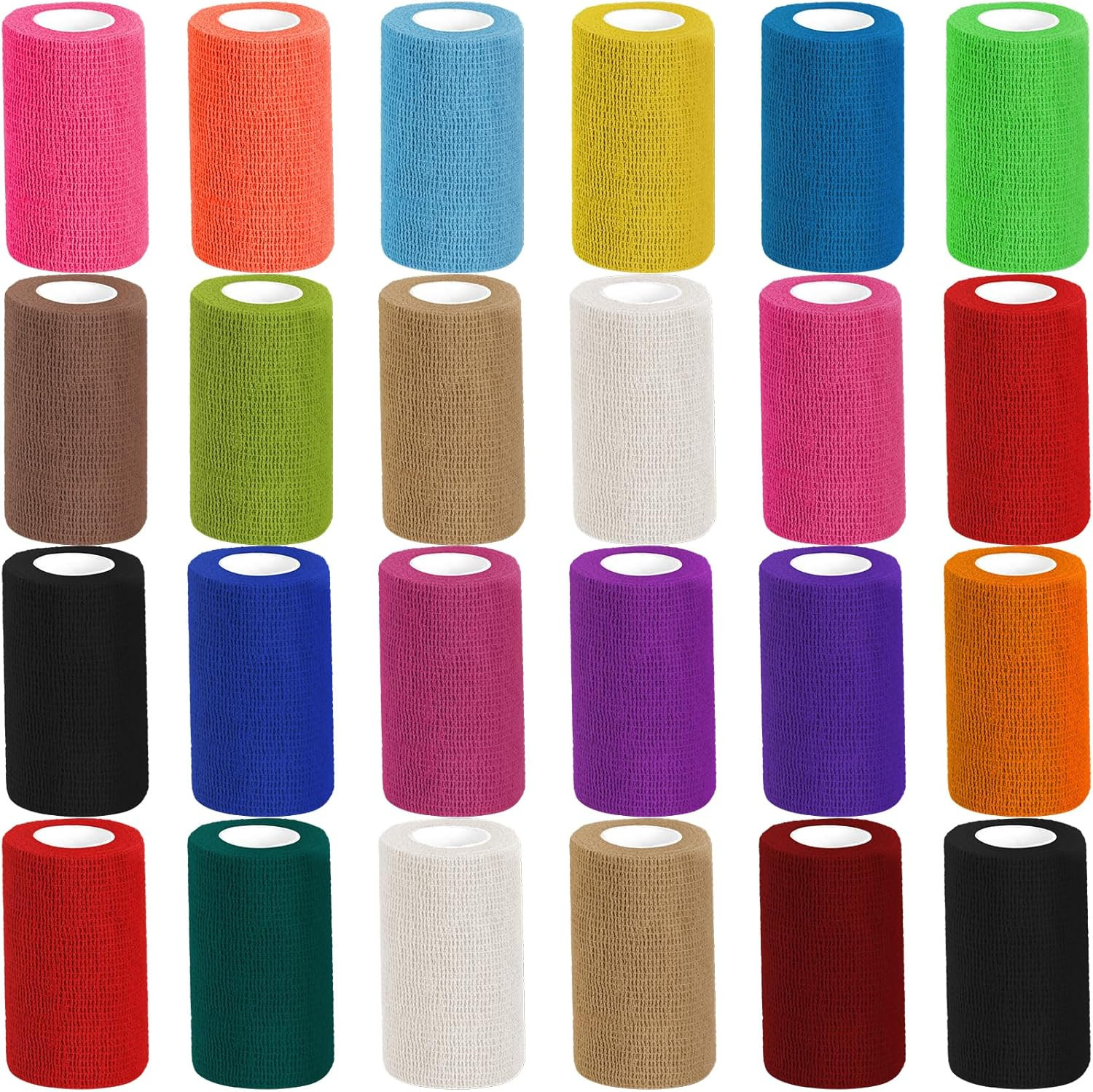 24 Pack Colorful Self Adhesive Bandage Wrap Bulk 20 Colors 4 Inch X 5 Yards Cohe