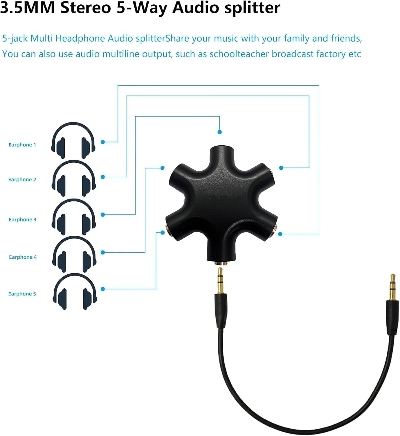 Durable 5-Port 3.5mm Headphone Splitter - Ideal for Road Trips Home Offers