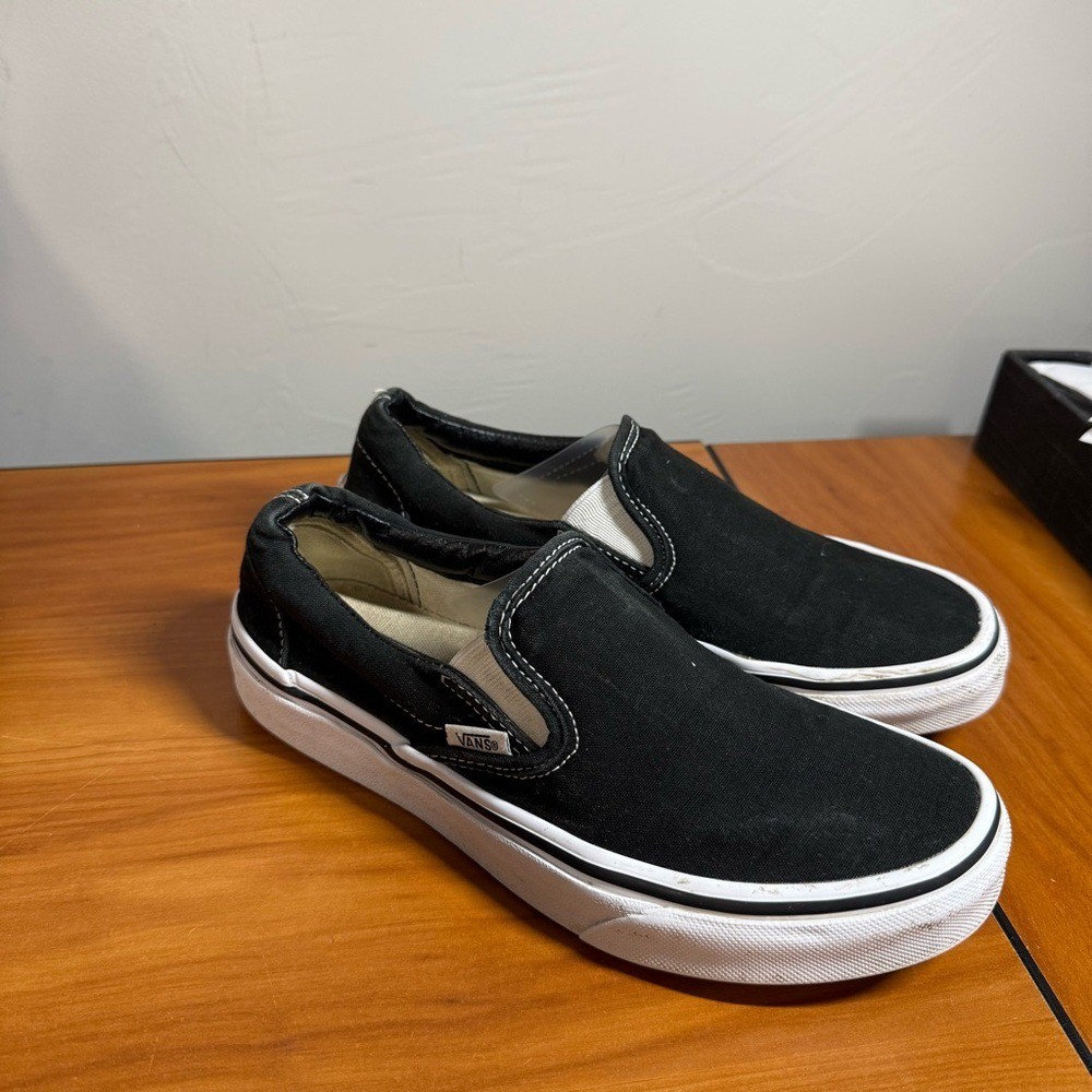 как выглядит Vans Womens Classic Slip On Black White Canvas Sneaker Shoe Casual Neutral W7 фото