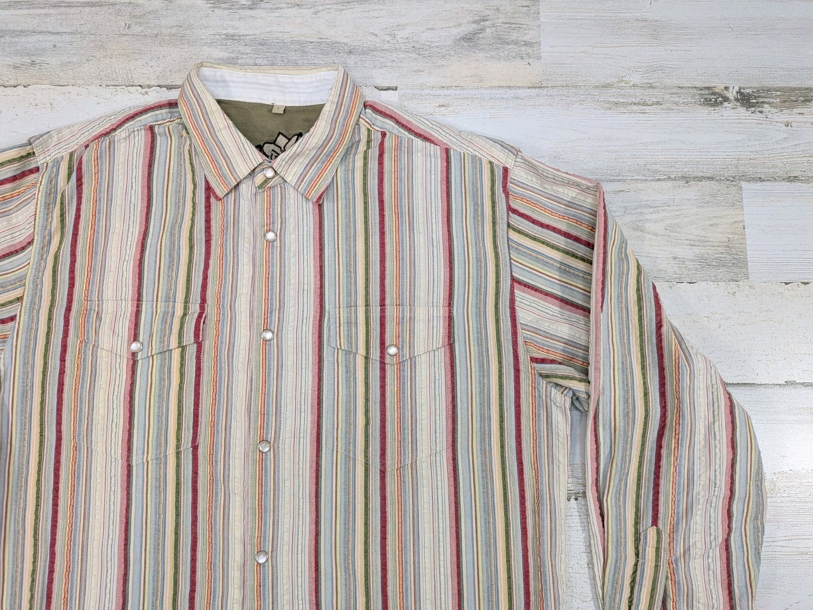 как выглядит Scully Shirt Mens Large Striped Pearl Snap фото