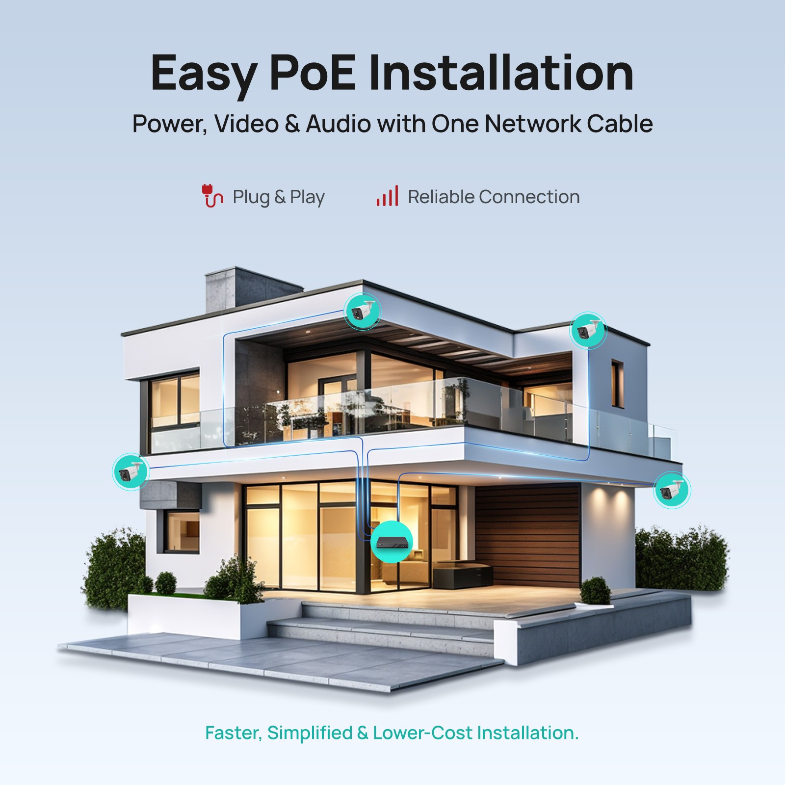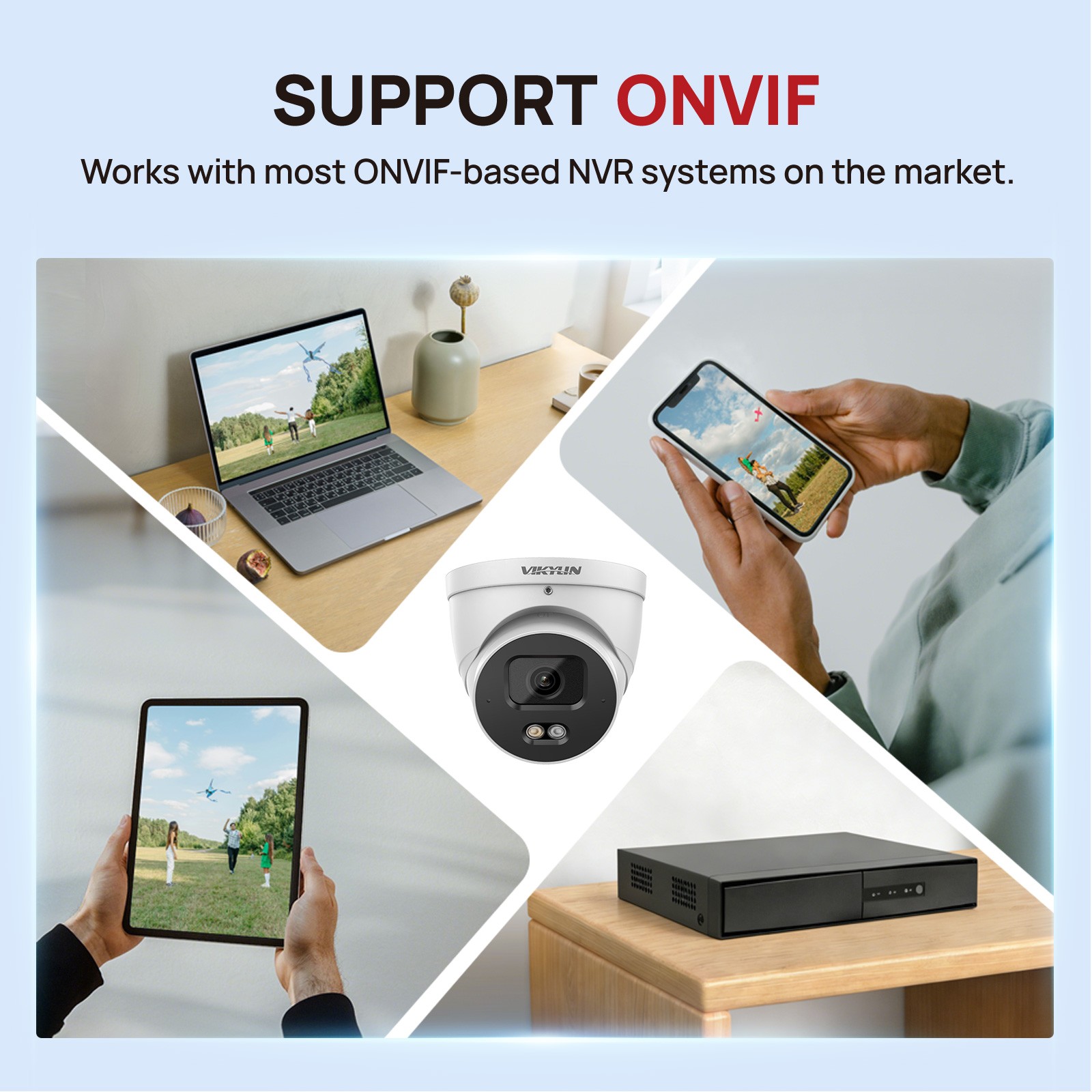 Vikylin Dual light Color IR Monitor Turret Network 4MP POE Security Camera Wired