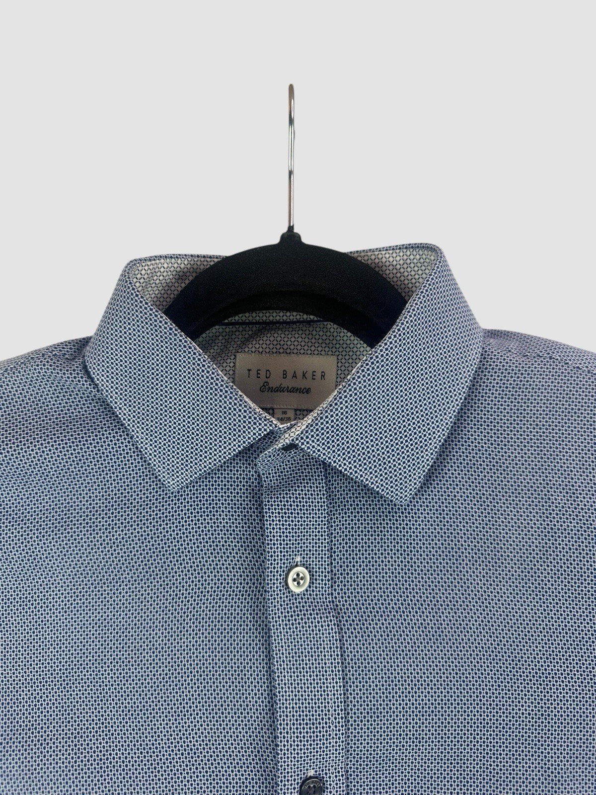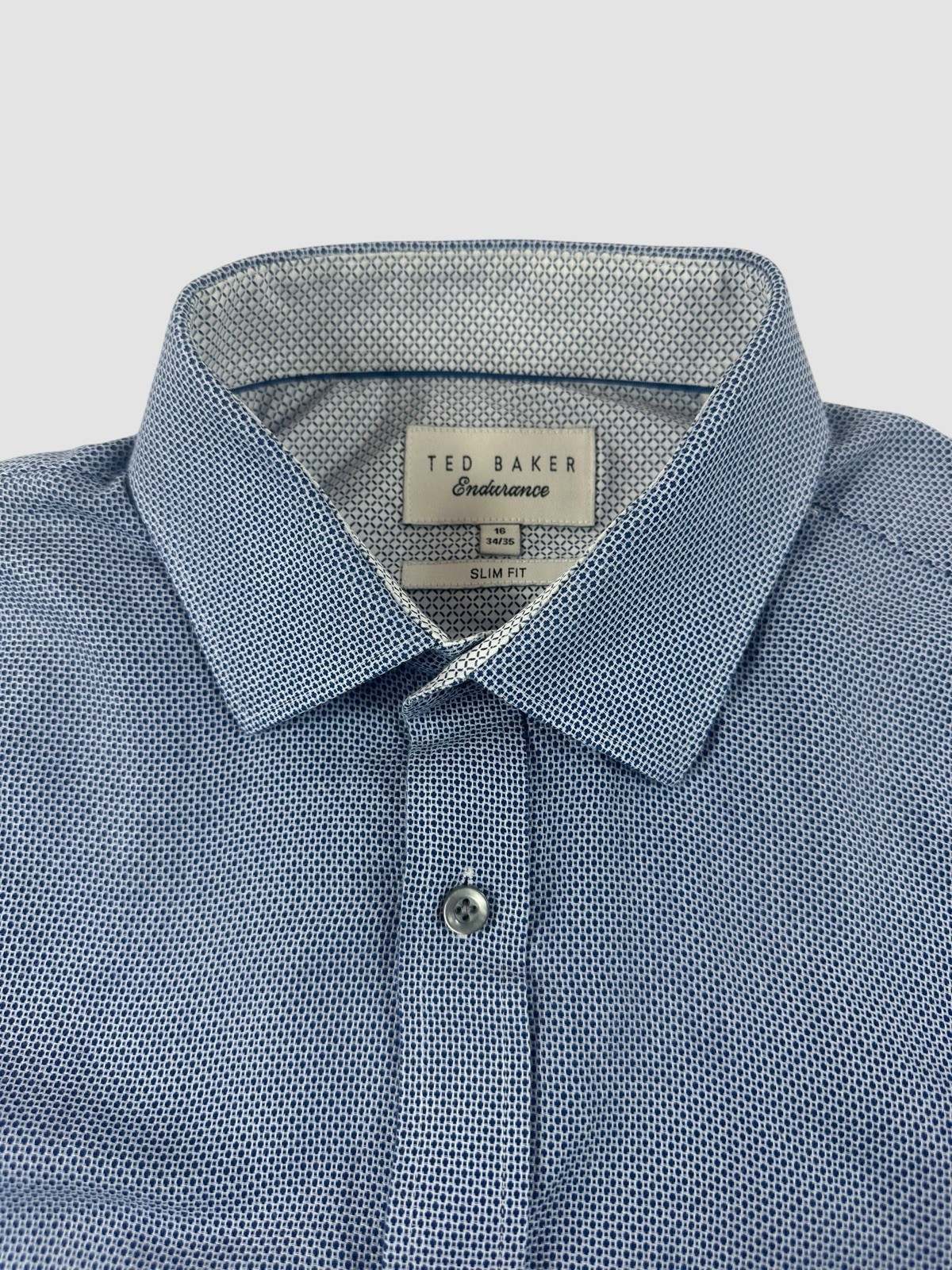 Ted Baker Endurance Mens 16 34/35 Slim Fit Dress Shirt Blue Geometric