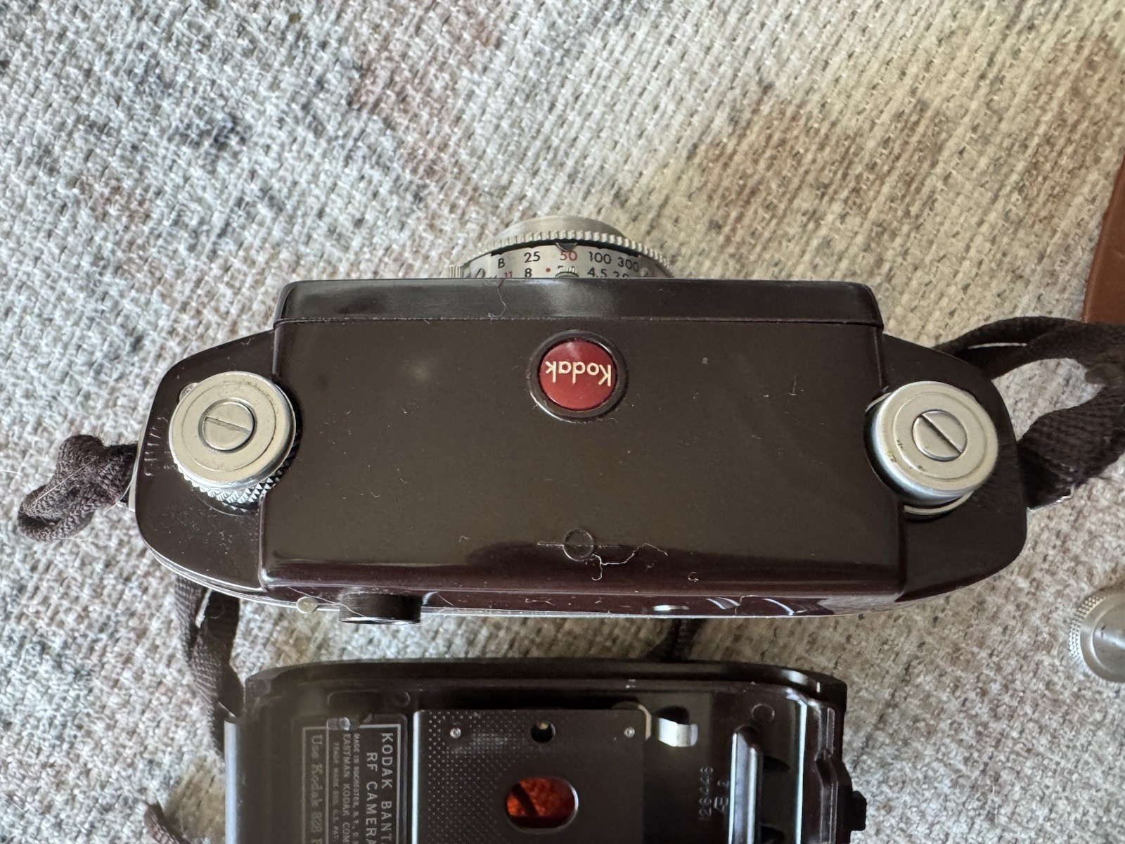 как выглядит Kodak Bantam RF Camera W/ Leather Carrying Case Vintage 1950s Flash 300 Shutter фото