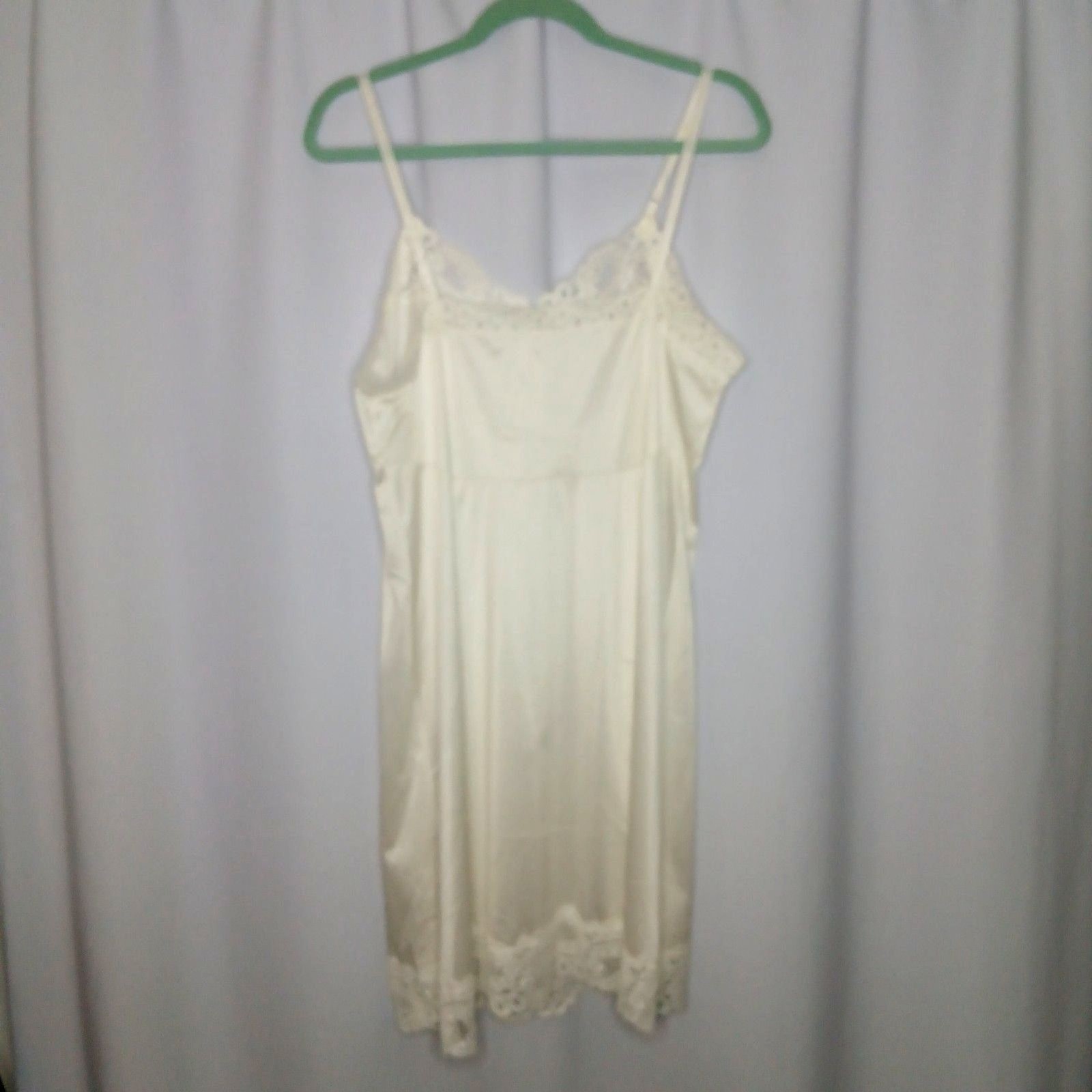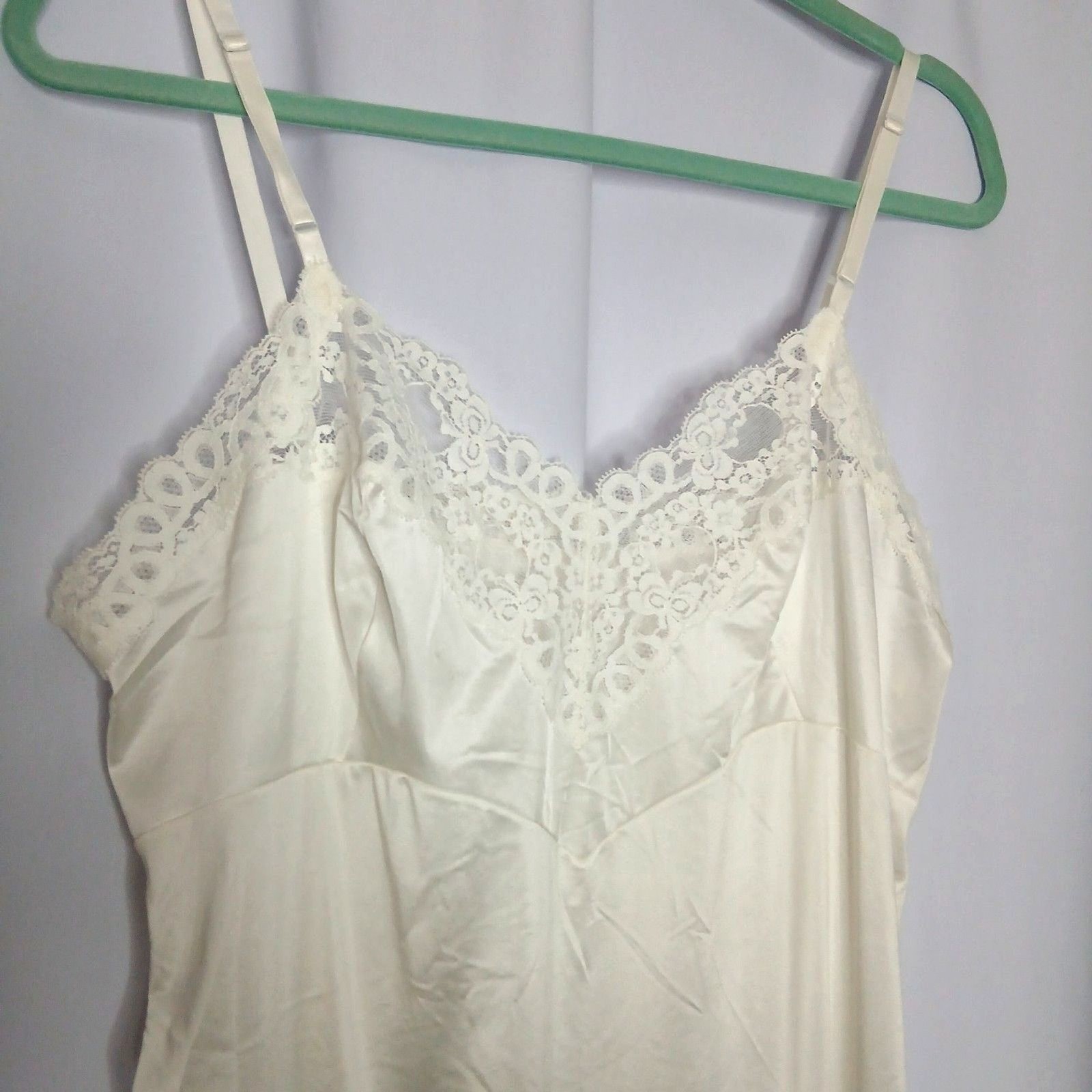 как выглядит Vintage Vanity Fair Floral Lace Full Slip Lingerie V-neck Ivory Womens sz 40 /L фото