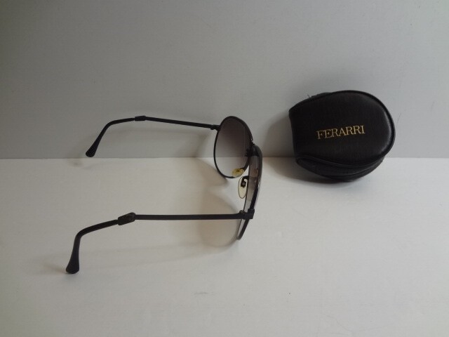 Vintage FERRARI Aviator Folding Black Rim Sunglasses, Original Zip Case CLEAN