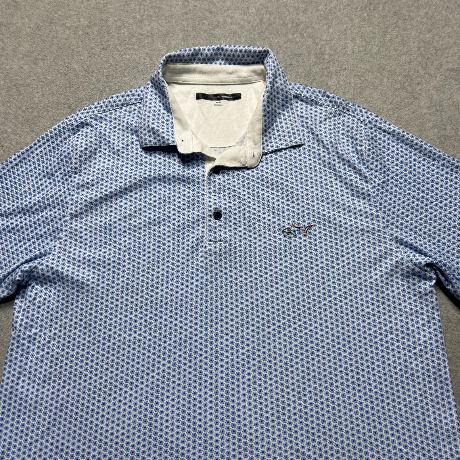 Greg Norman Golf Shirt Mens XL Blue Floral Print Performance Stretch Casual