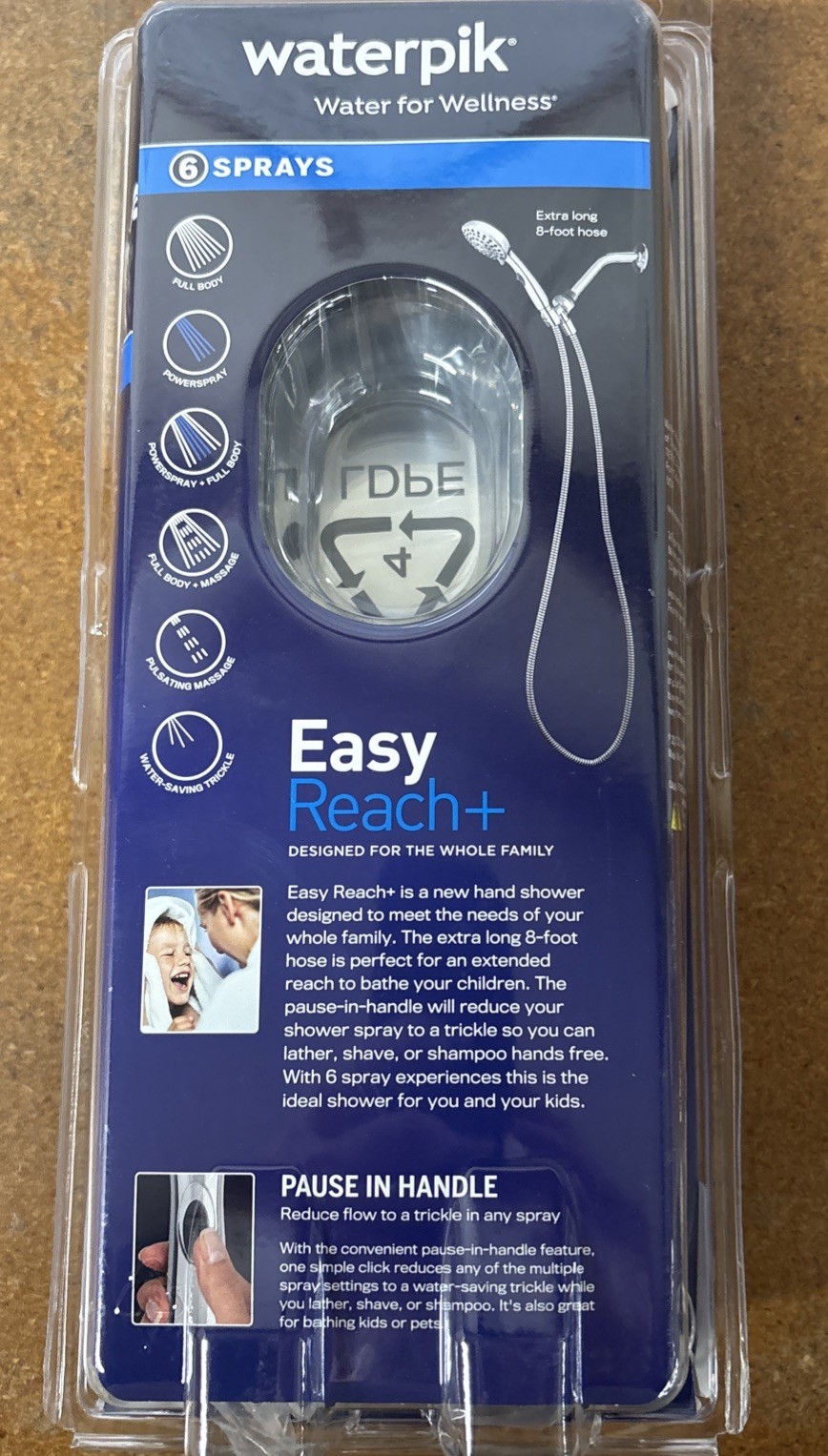 Waterpik Power Spray 6 Sprays Handheld Shower Head Stainless Steel Chrome NEW