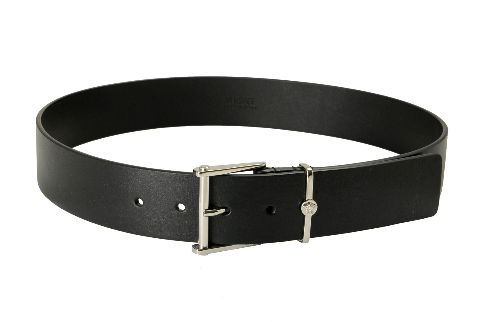как выглядит Versace Black 100 Leather Silver Medusa Head Decorated Belt US 36 IT 90 фото