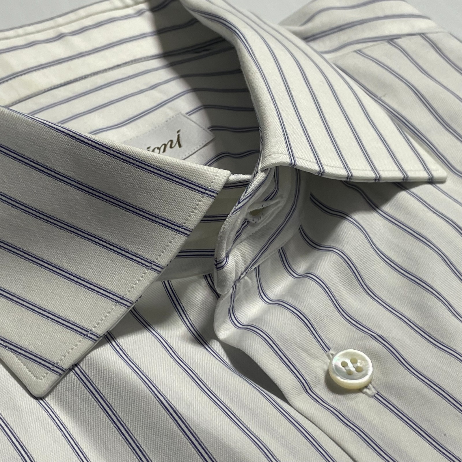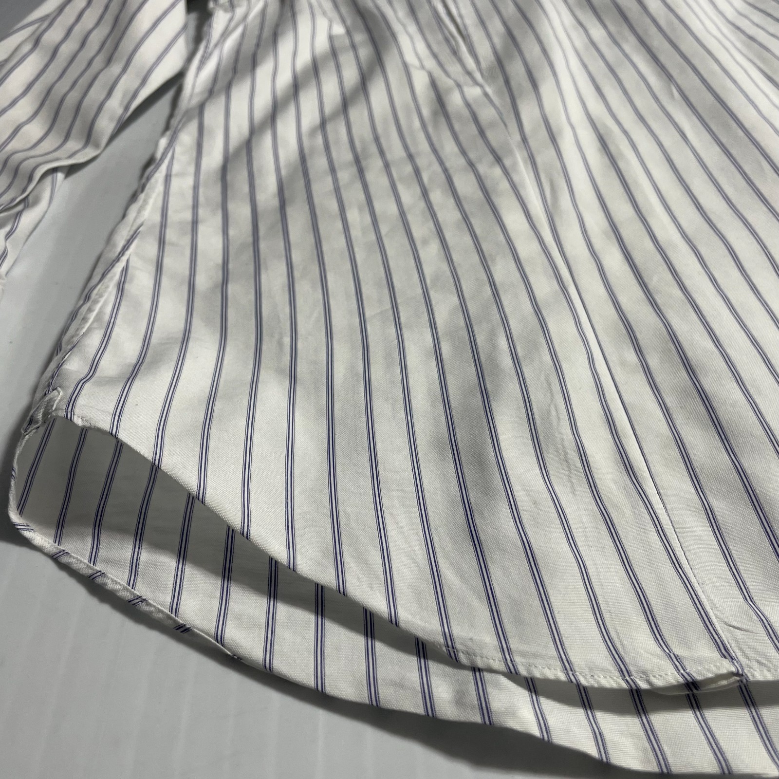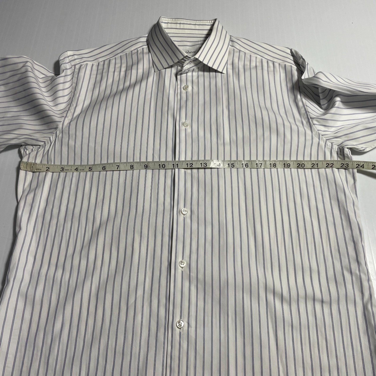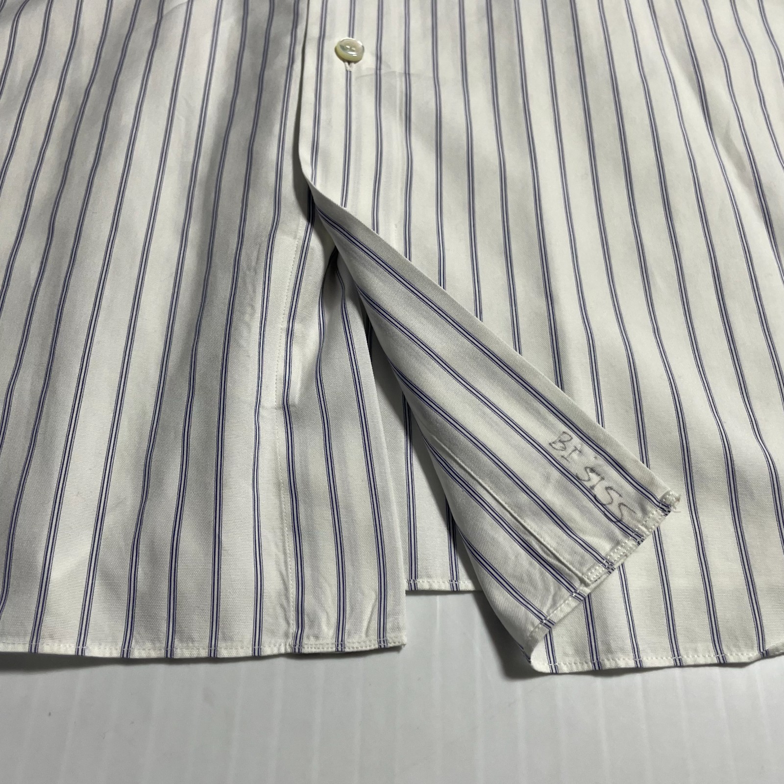 как выглядит Brioni Italy Dress Shirt White Blue Stripe Cotton Colosseo 17.5 44 фото