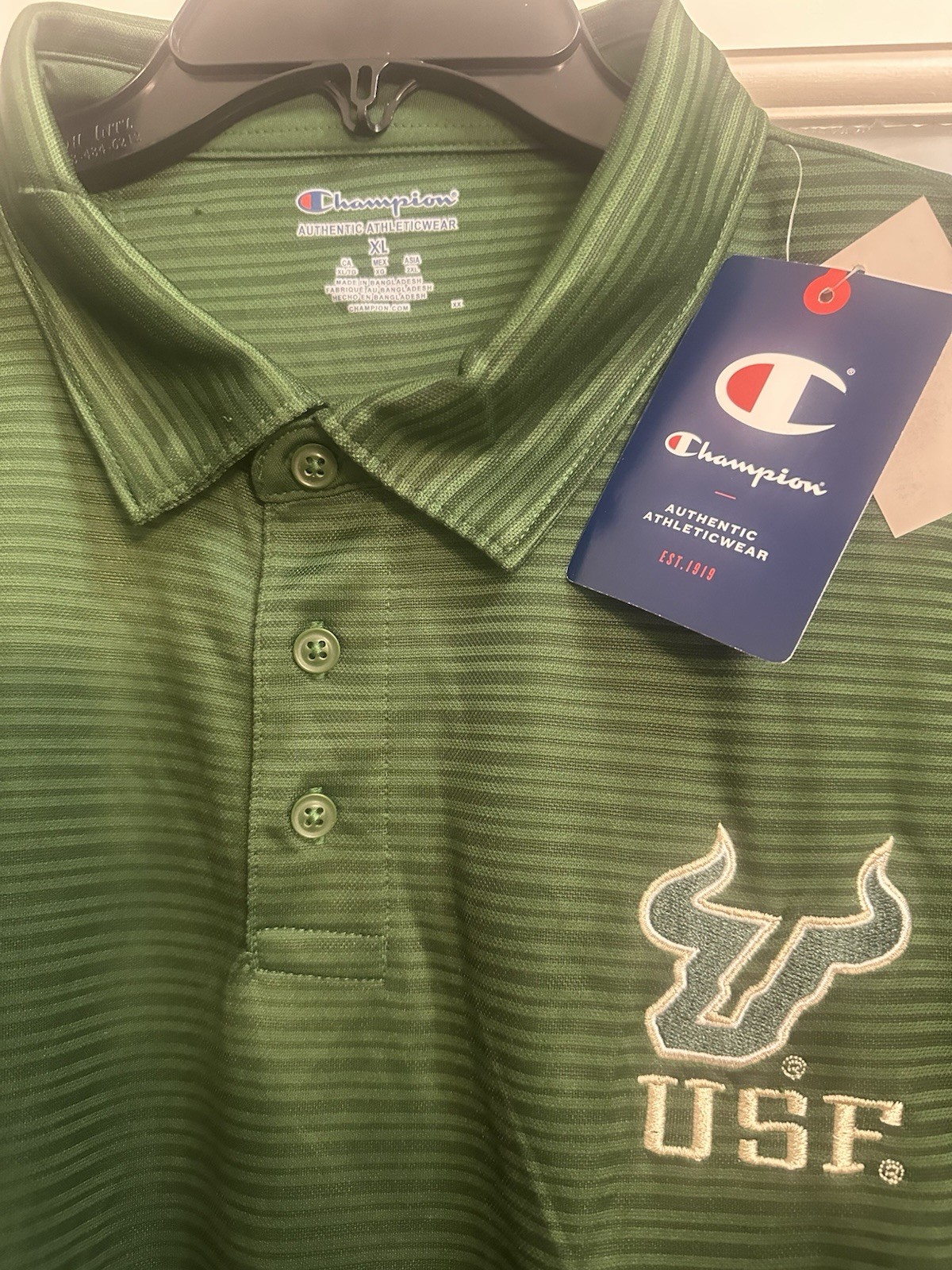как выглядит Champion NCAA USF South Florida Bulls Football Mens Polo Shirt XL Striped фото