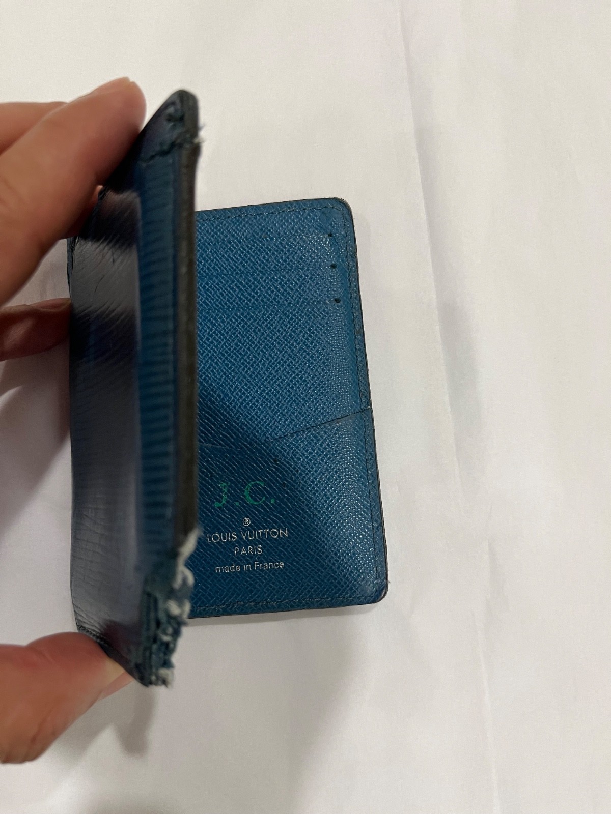 как выглядит Louis Vuitton Pocket Organizer - EPI Leather Blue - Damaged фото