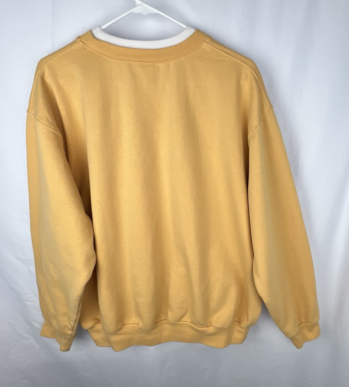 Vtg Morning Sun Yellow Embroidered Bird Floral Heart Sweatshirt 2XL Cottagecore