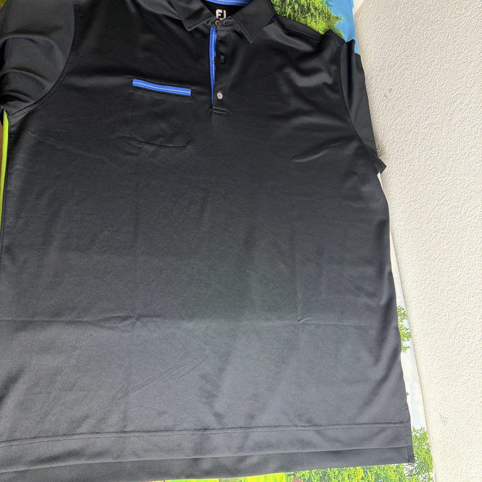 как выглядит FootJoy Golf Polo Shirt Mens 2XL Black Stretch Short Sleeve - Pocket фото