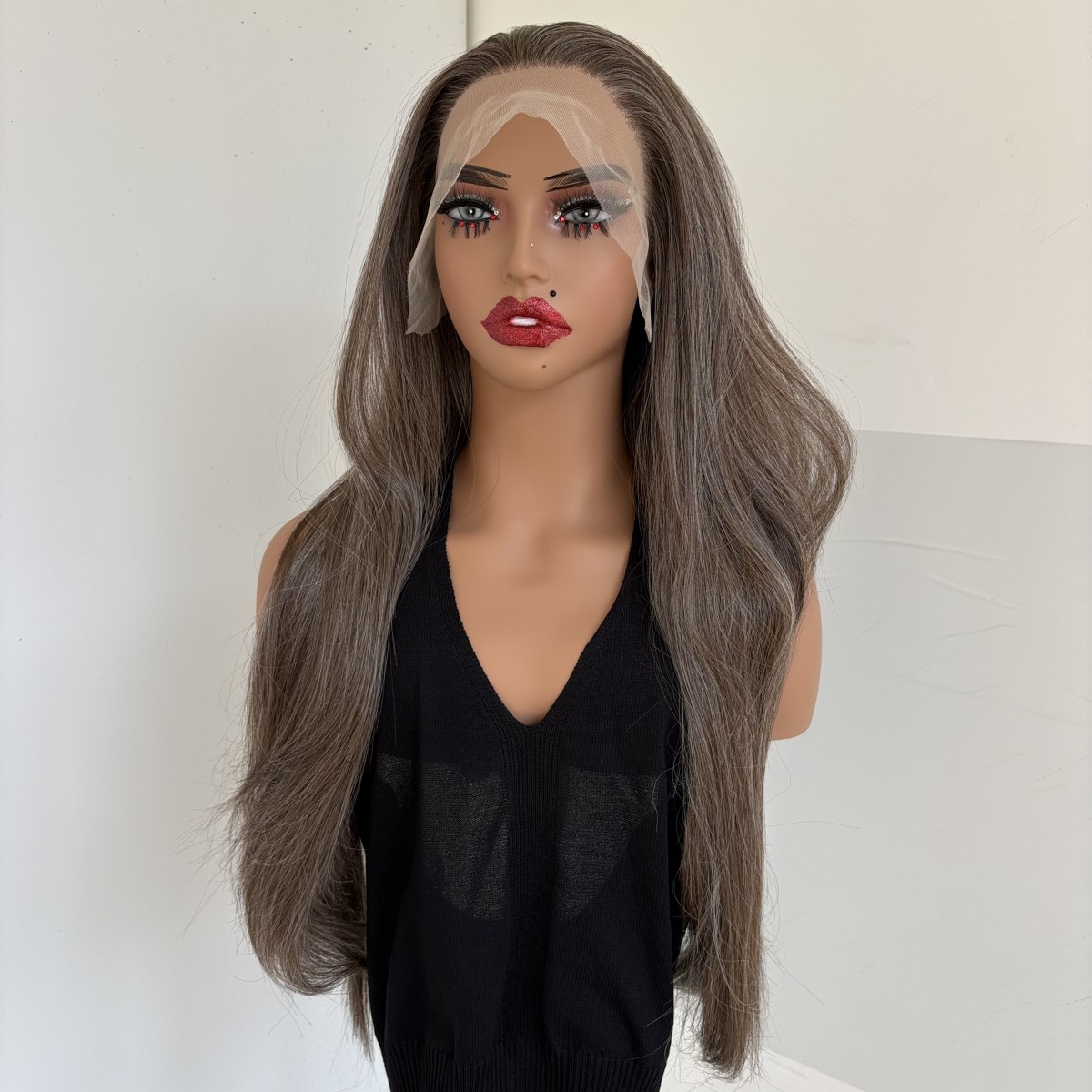 Long Straight Brown mix Blonde Lace Front Wig Pre Plucked Heat Resistant Hair