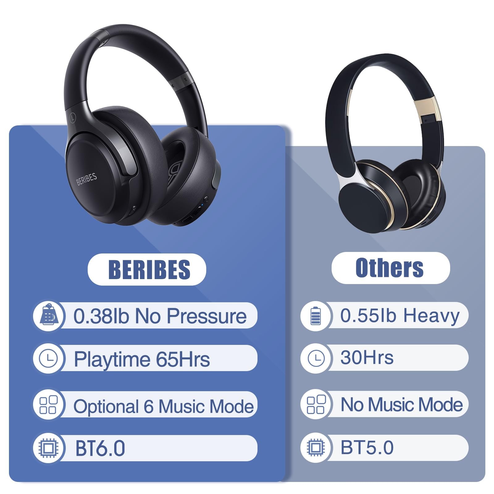 Bluetooth Headphones Over Ear, 65H Playtime and 6 EQ Music Modes Wireless Hea...