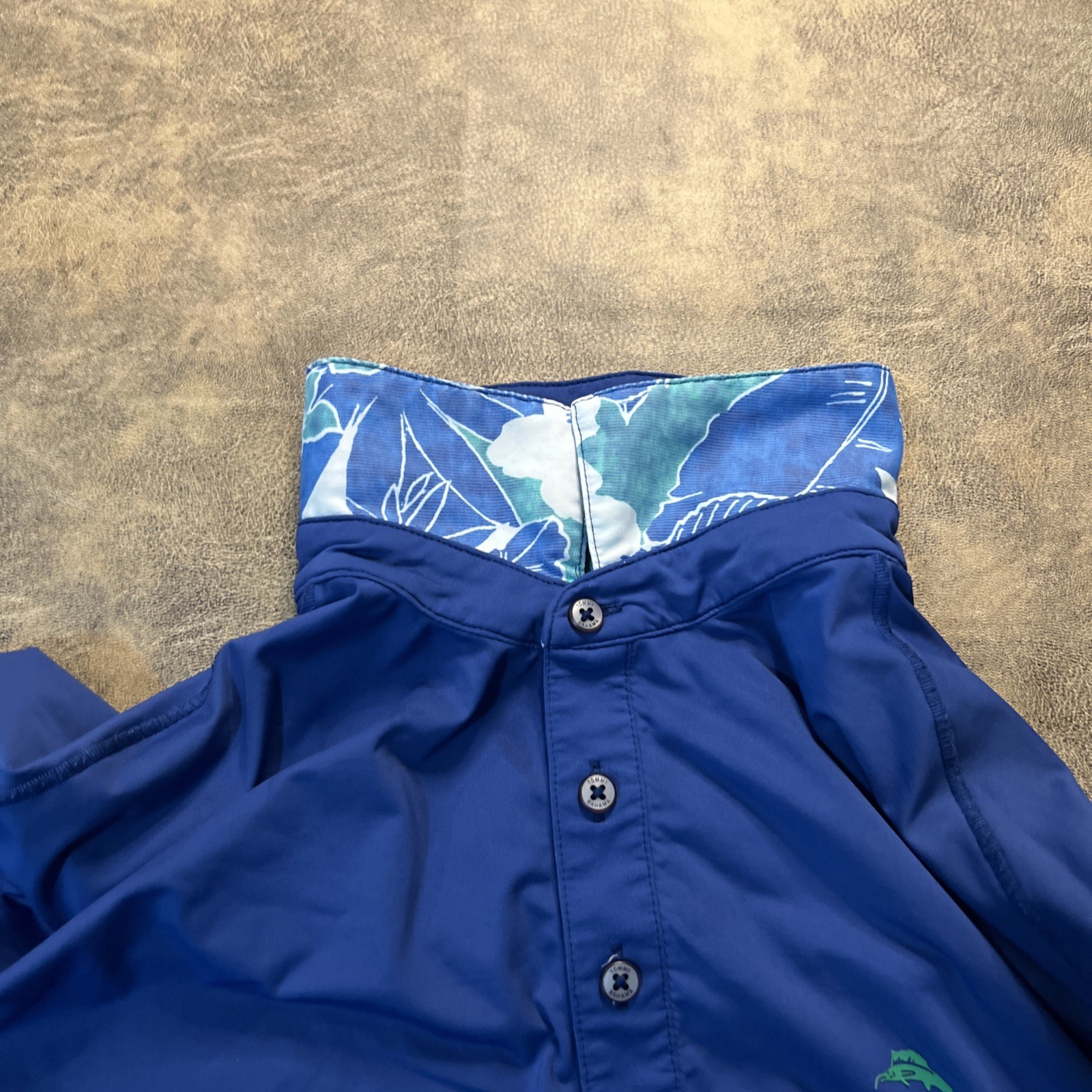 как выглядит Tommy Bahama Island Zone Polo Shirt SZ M Blue Nylon Stretch Golf SEE FLAWS фото