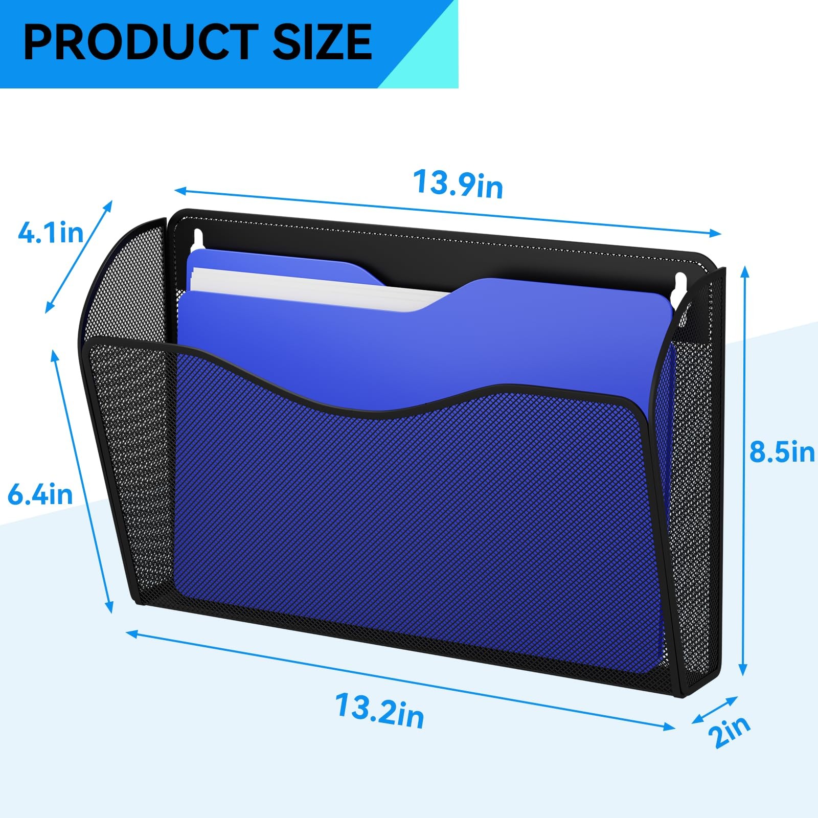 3 Single Pocket Wall File Holder, Mesh Hanging File Folder Paper Organizer, V...