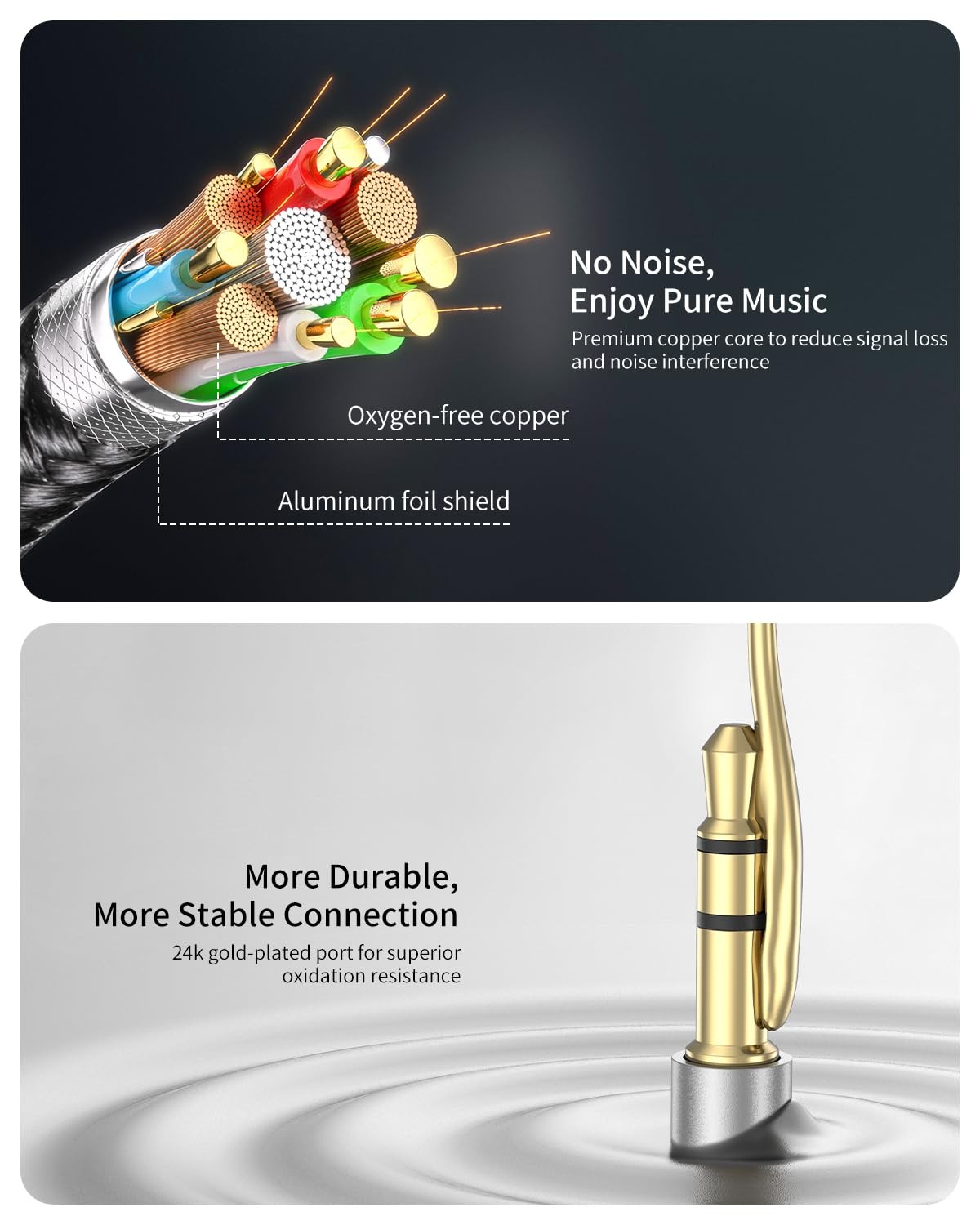 USB C to Aux Cable 3.3ft, 2Pack Type C to 3.5mm Audio Cable Braided USBC AUX Cor