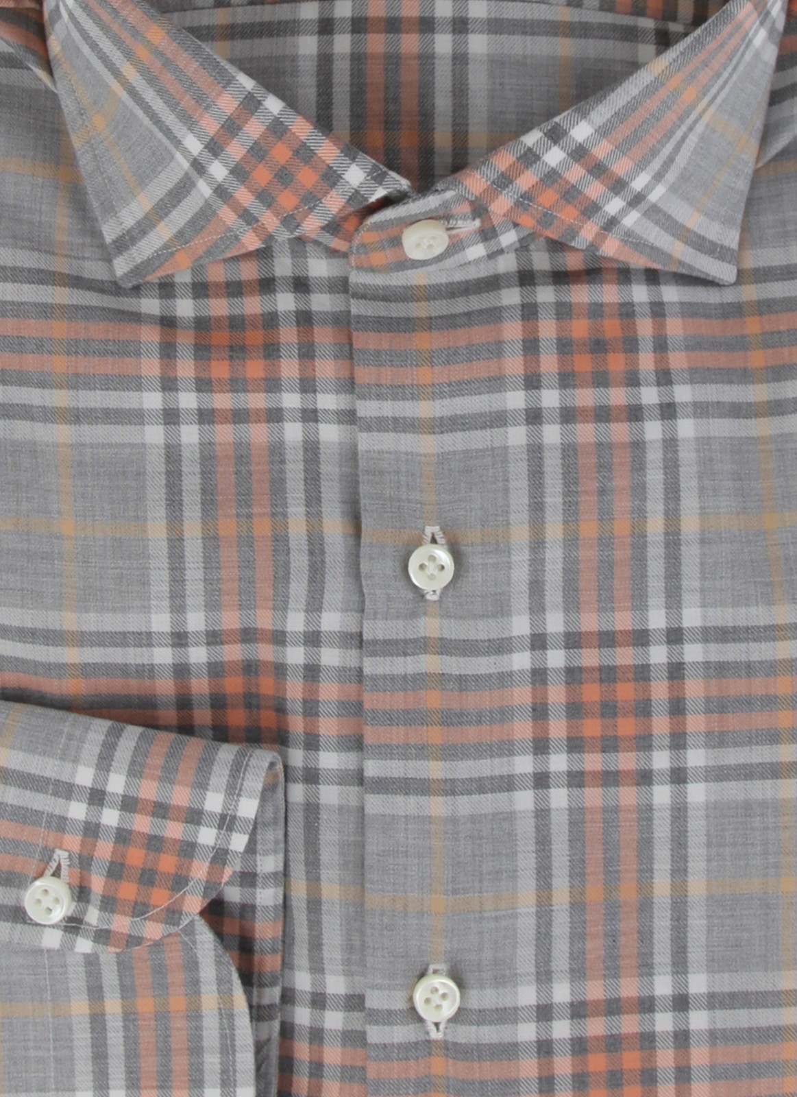 500 Luigi Borrelli Orange Plaid Cotton Shirt - Slim - LB328269