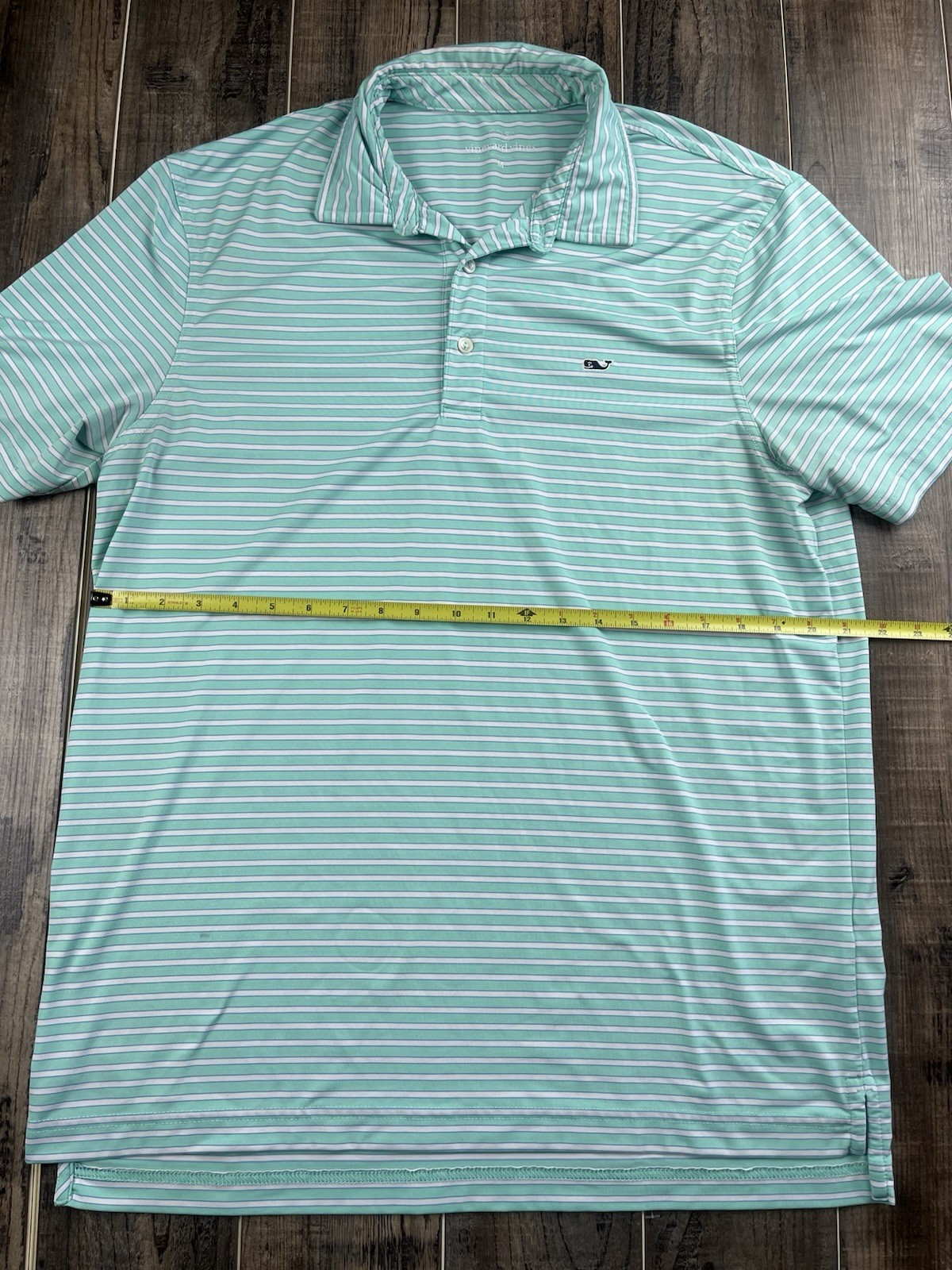 Vineyard Vines Shirt Men size Medium polo stretch performance Golf Stripe Green